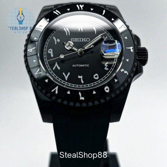 Seiko Submariner m0de Stealth Black Arabic NH35 Automatic Sapphire