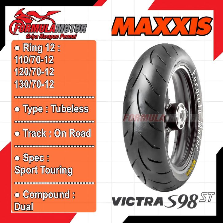 110/70-12 Maxxis Victra S98 ST Ring 12 Tubeless - Ban Luar Motor Fazzio, Primavera, Sprint, Grand Filano Original Baru