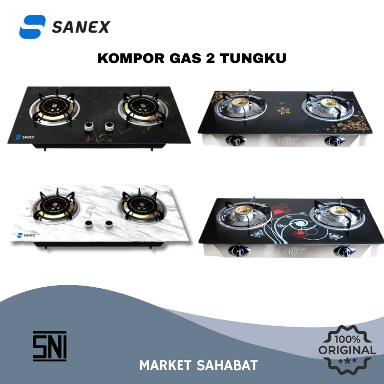 SANEX KOMPOR GAS KACA SN-KG208 TANAM 2 TUNGKU MARBLE SERIES SN-KT201 API BIRU MURAH TANPA DP TERLARIS