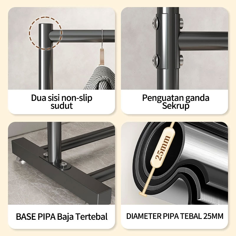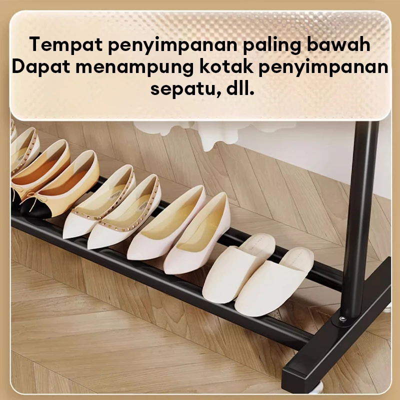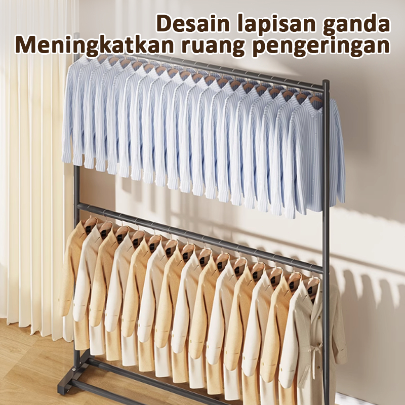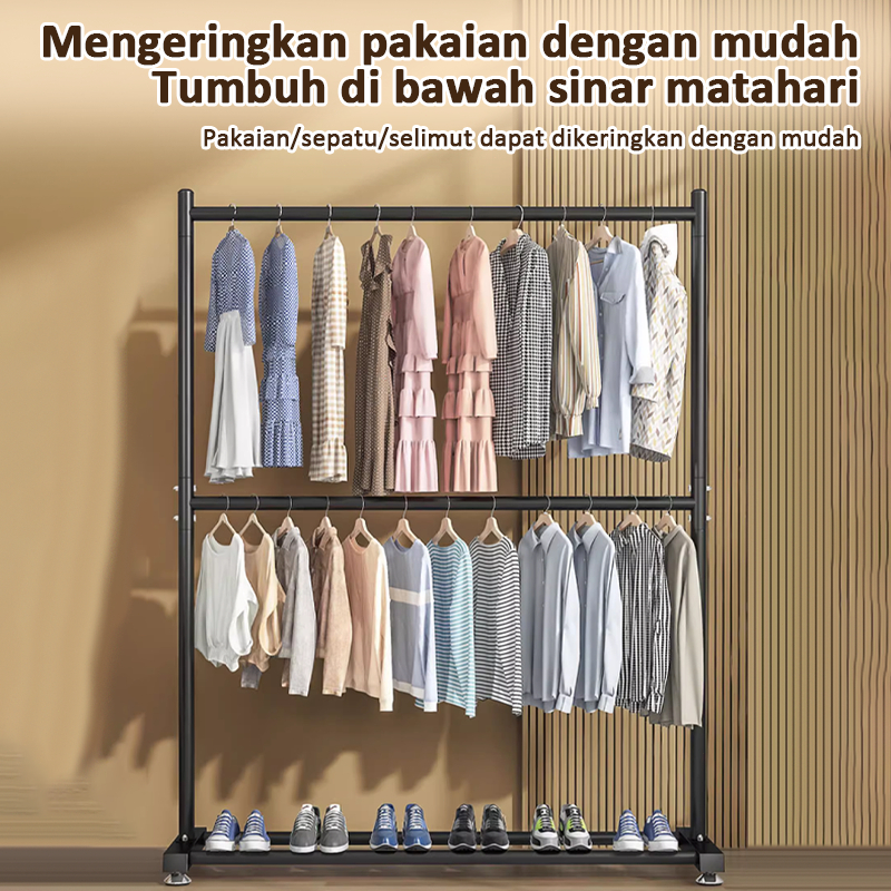 Rak Gantungan Baju 2 Susun Stand hanger double Besi Portable Gawang 2 Tingkat Rak Display Baju Berdiri