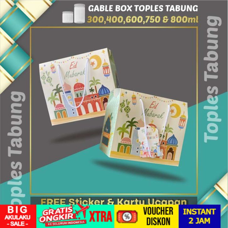 25pcs Gable Box Lebaran Tali jinjing / B25pcs Gaox Hampers Kue Kering Idul Fitri Toples Tabung/ WHITE PINK (Paket 25pcs)