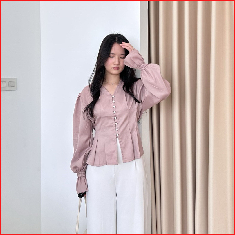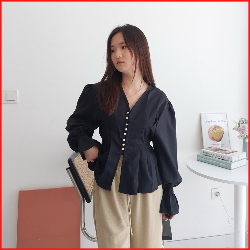 Bora Top Blouse Wanita Korea Atasan Kantor Wanita Kasual Blouse Elegan Korea Blouse Hijab Friendly Blouse Lengan Panjang