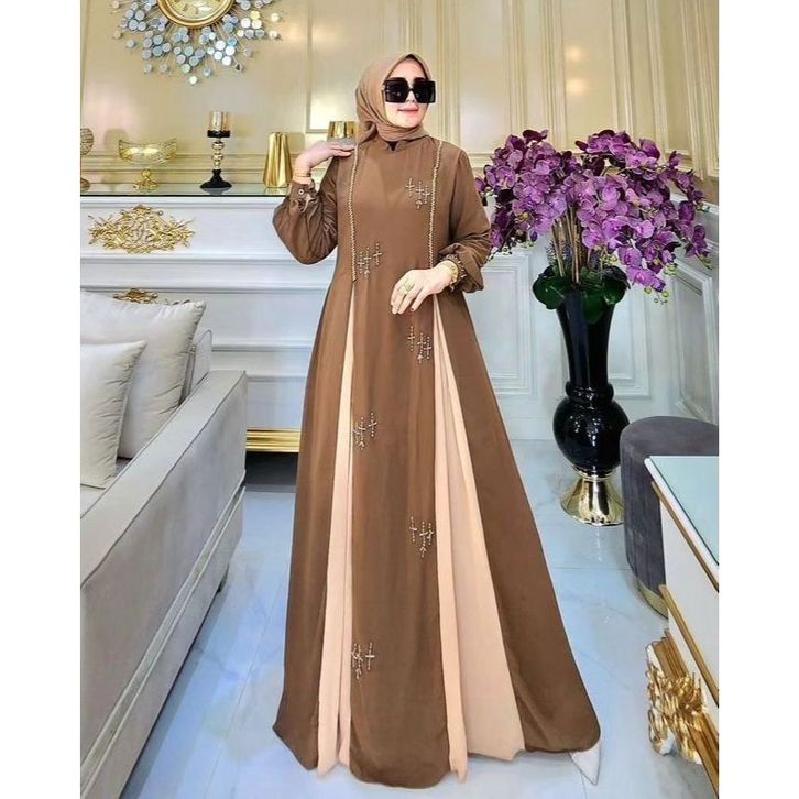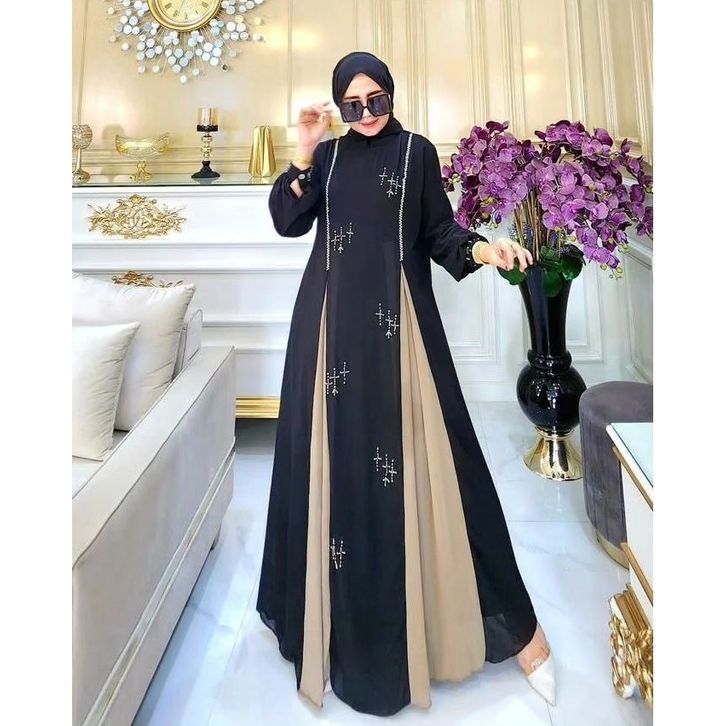 Vallina Outfit - Azalia Maxy Abaya Arabian Cerutty Babydoll Pearls Gamis Dress Muslim Wanita Lebaran Premium