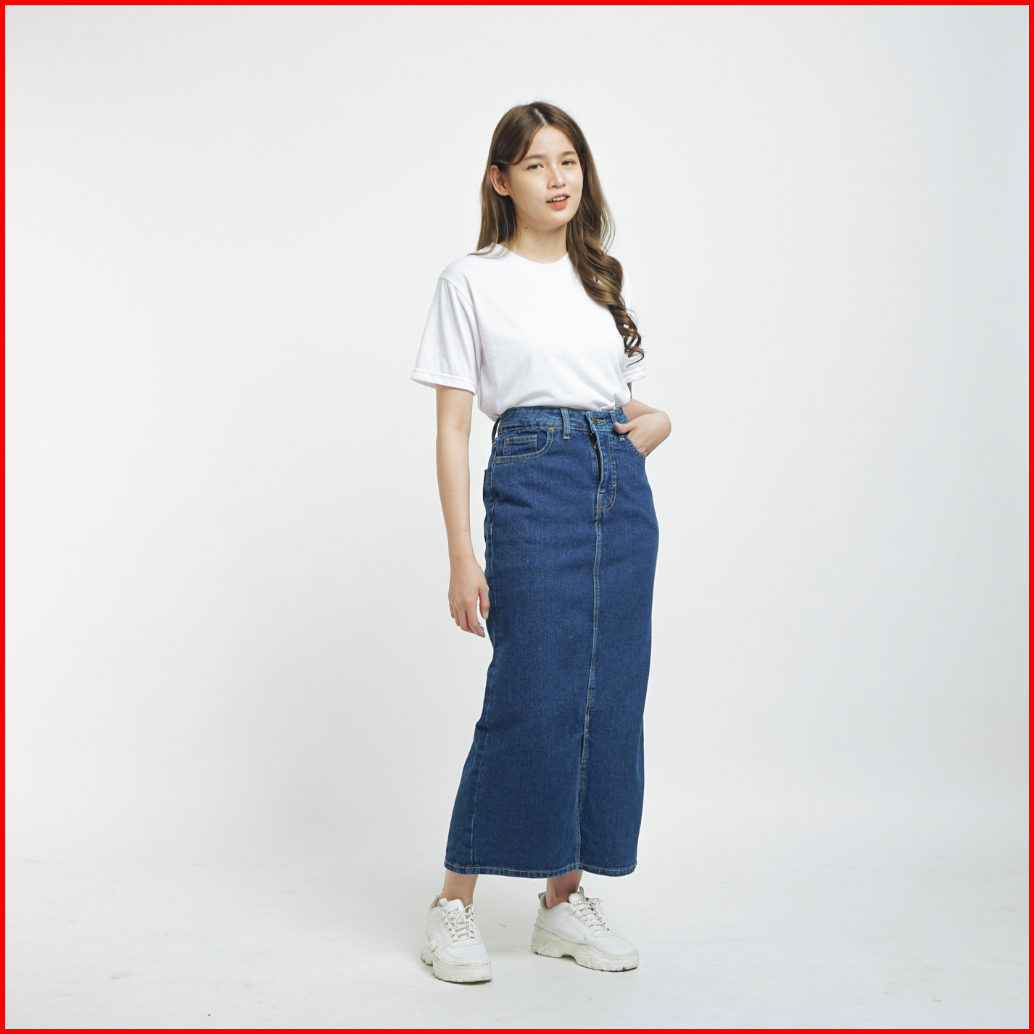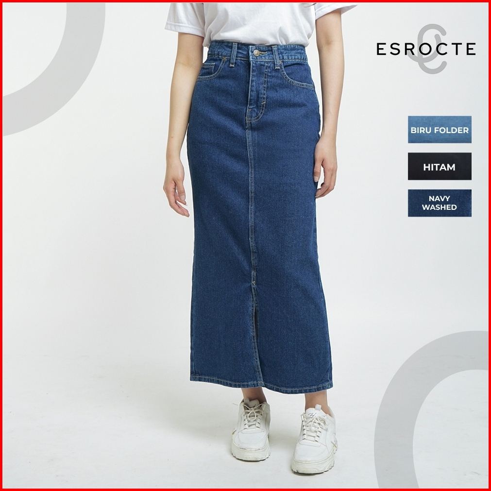 Esrocte Rok Skirt Mid Waist Panjang Jeans Wanita P65 - 26-38 001