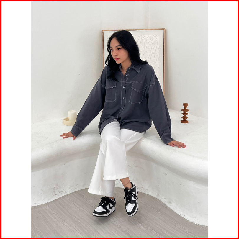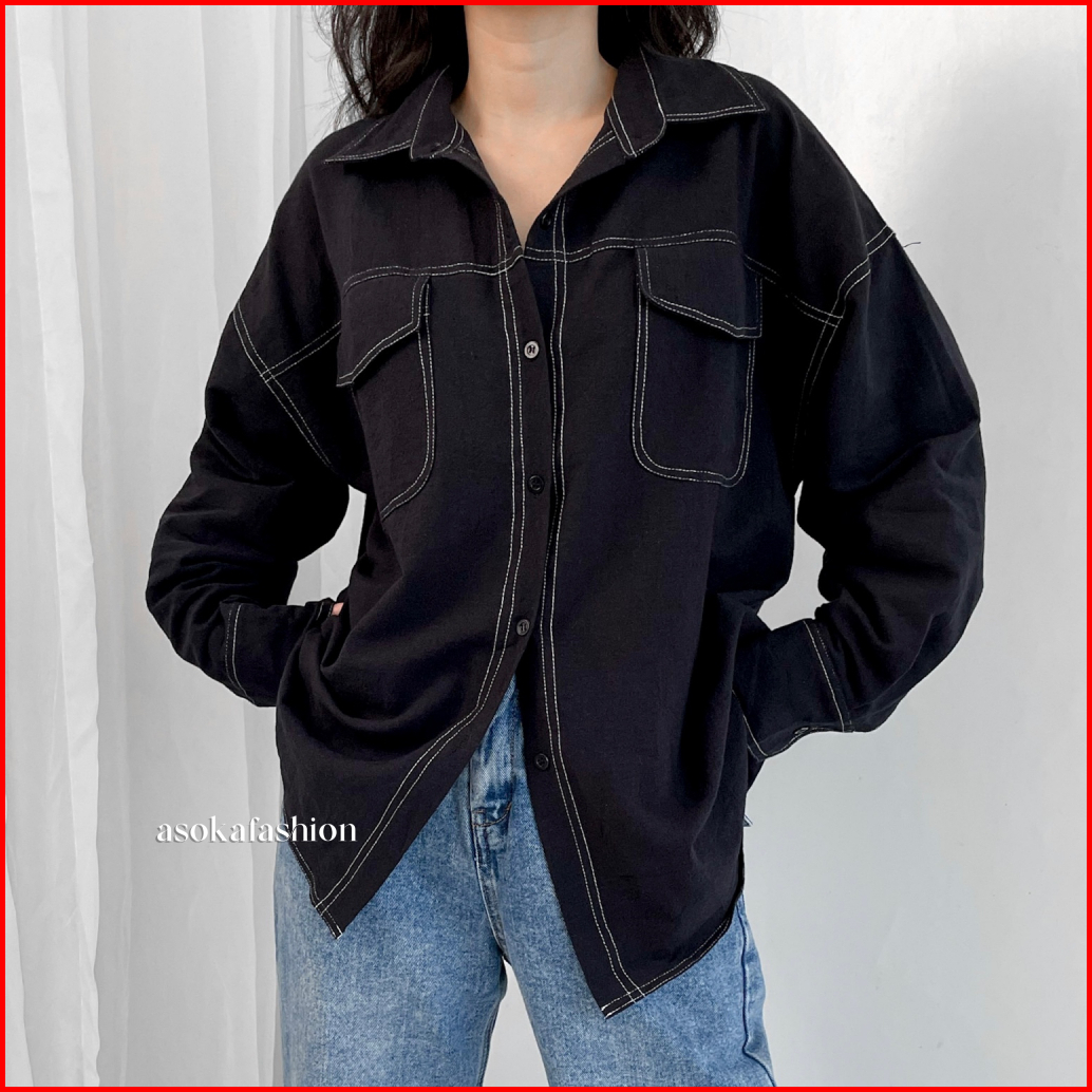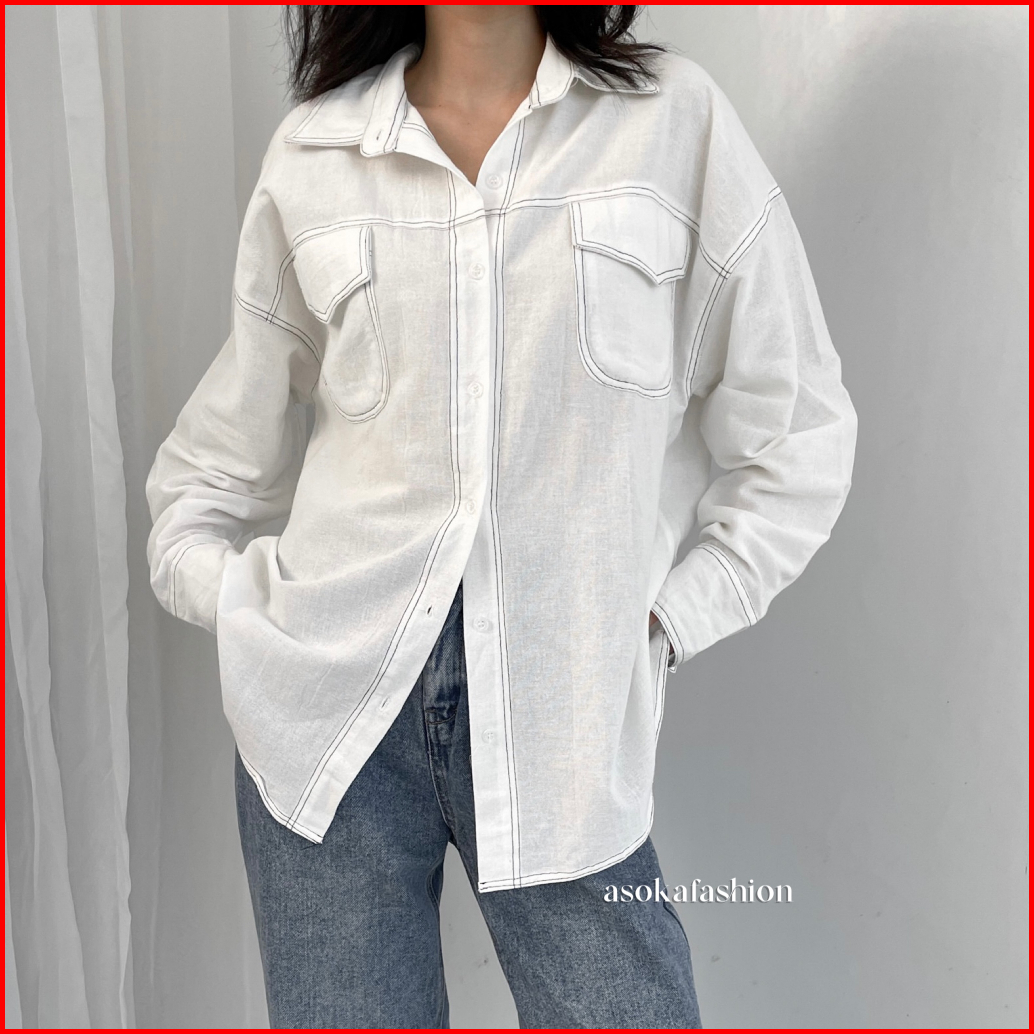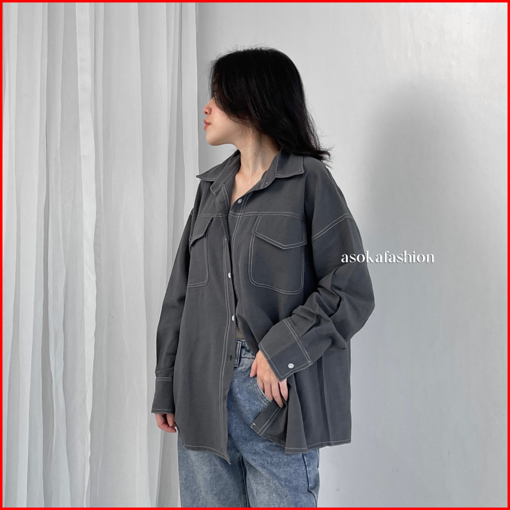 Asoka Kaylee Shirt 2198 - Atasan Oversize Wanita Kemeja Kantor Casual - Pocket Shirt Basic Oversize Linen