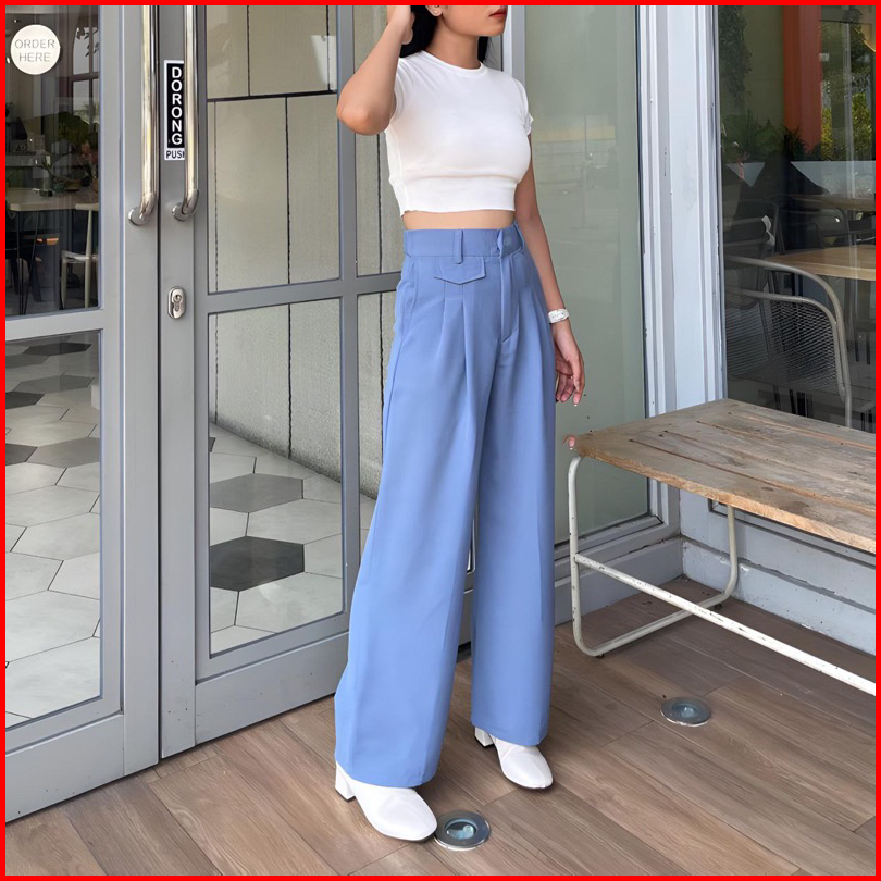 Oro Pants Highwaistedpants - Loosepants Trousers Wanita - Celana Anti Kusut - Celana Kulot Wanita Polyester Premium
