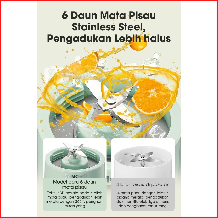 Samono Blender Portable 6 Mata Pisau 350ml 350ml Usb Mini Juicer Multifungsi Sw-y6s