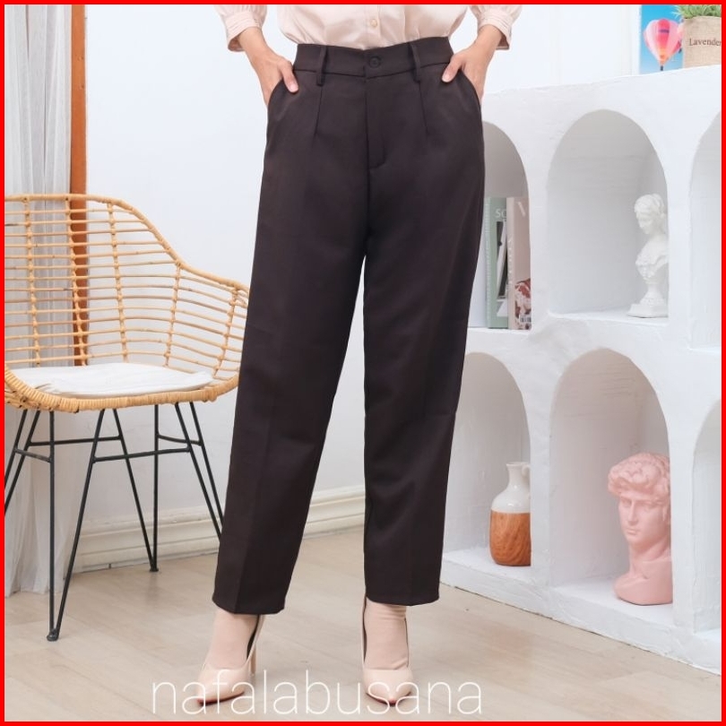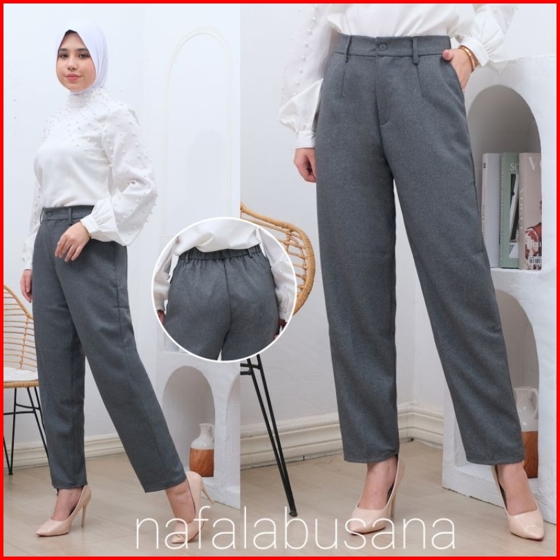 Celana Kerja Wanita Highwaist Pinggang Karet Belakang Bahan Dasar Kain Kantor Formal