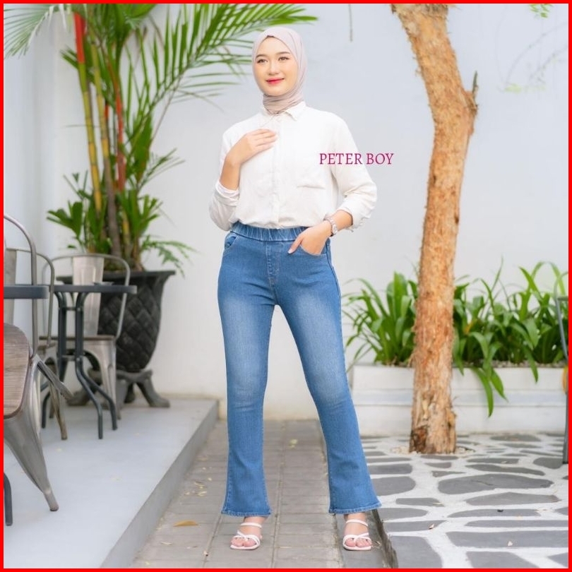 Celana Jeans Wanita Cutbray Model Pinggang Karet