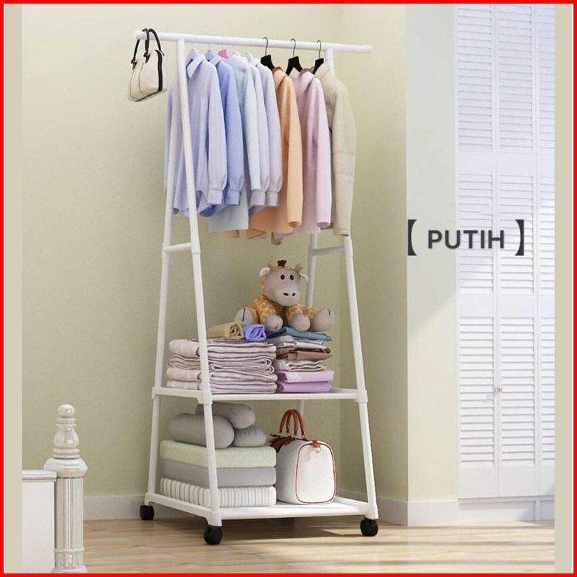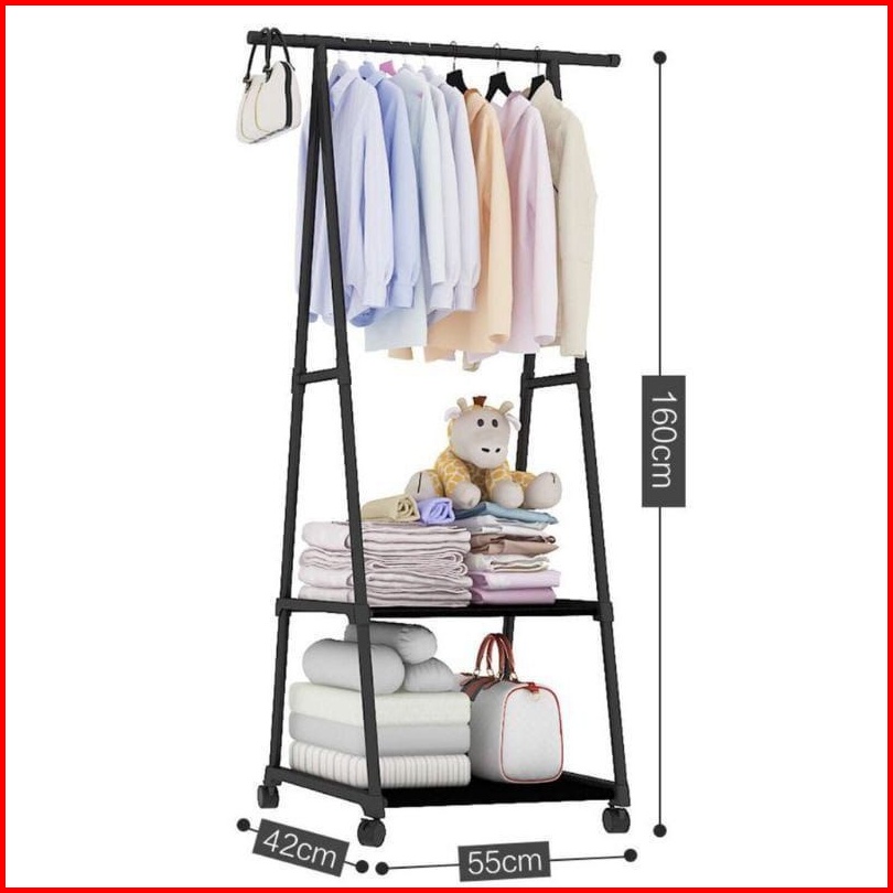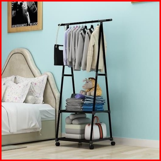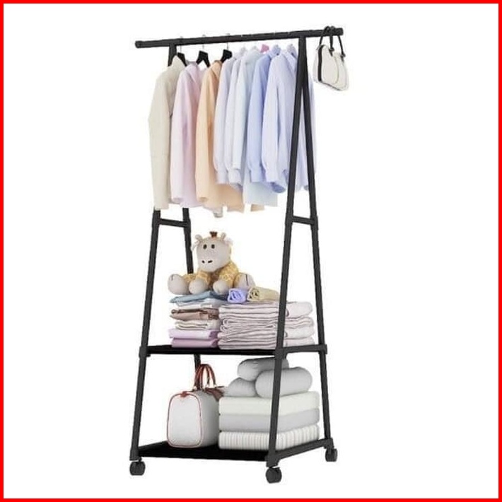 Triangle Stand Hanger Baju Rak Pakaian Serbaguna Gantungan Baju Dengan 4 Roda