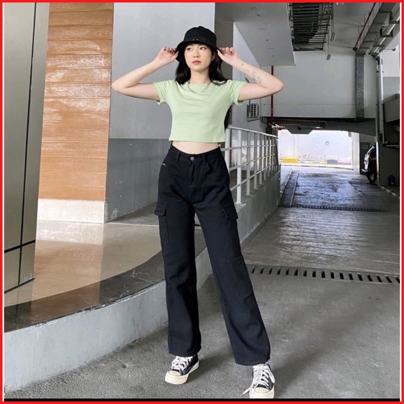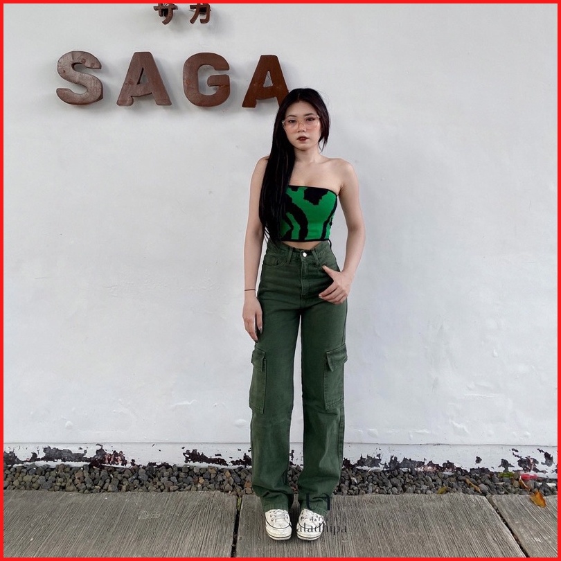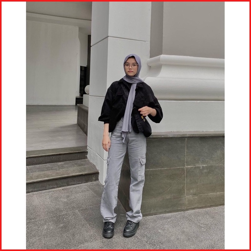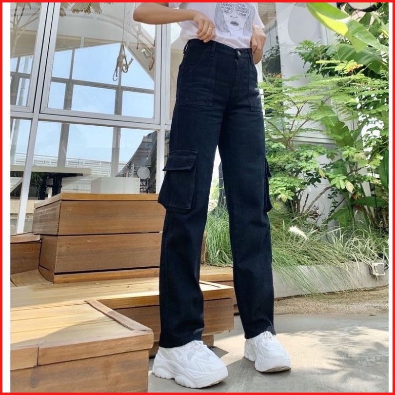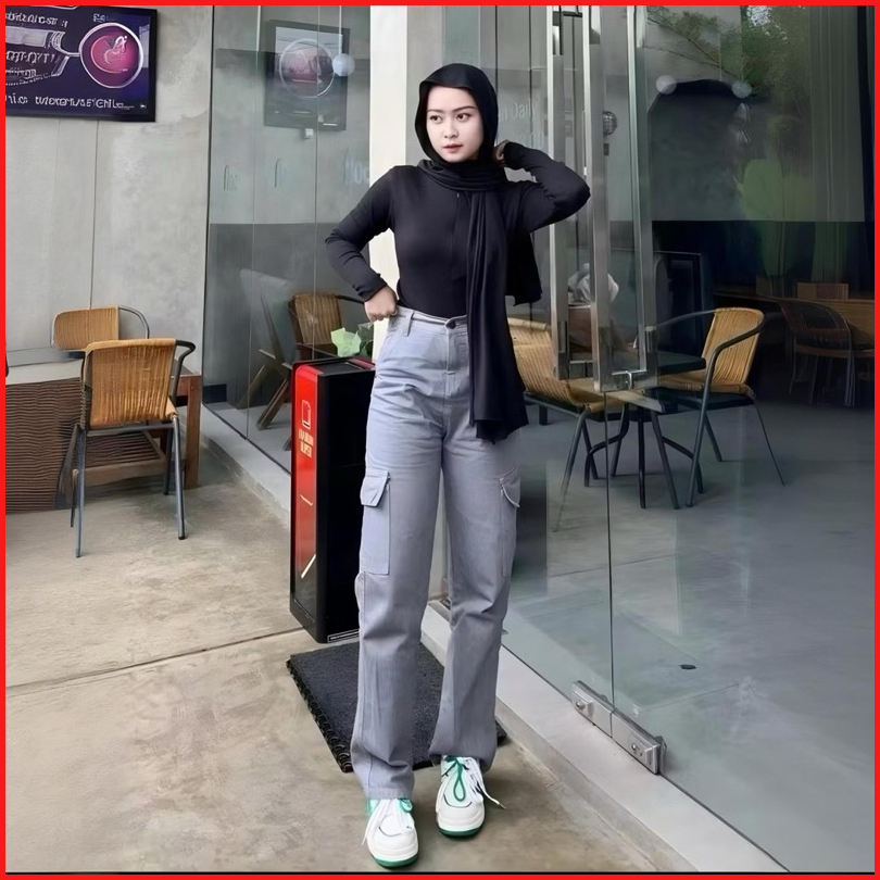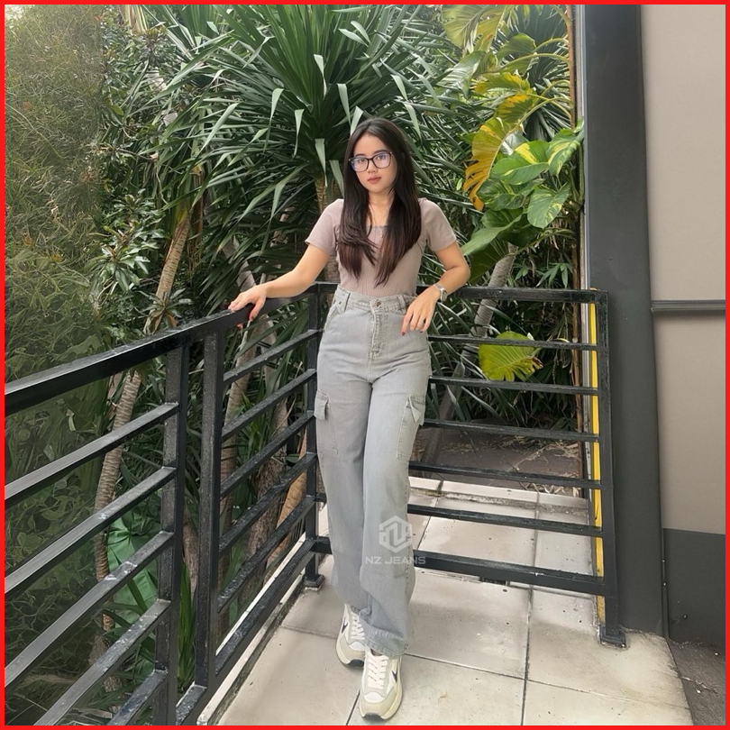 Celana Highwaist Cargo Jeans Wanita Voll 2 Non-stretch