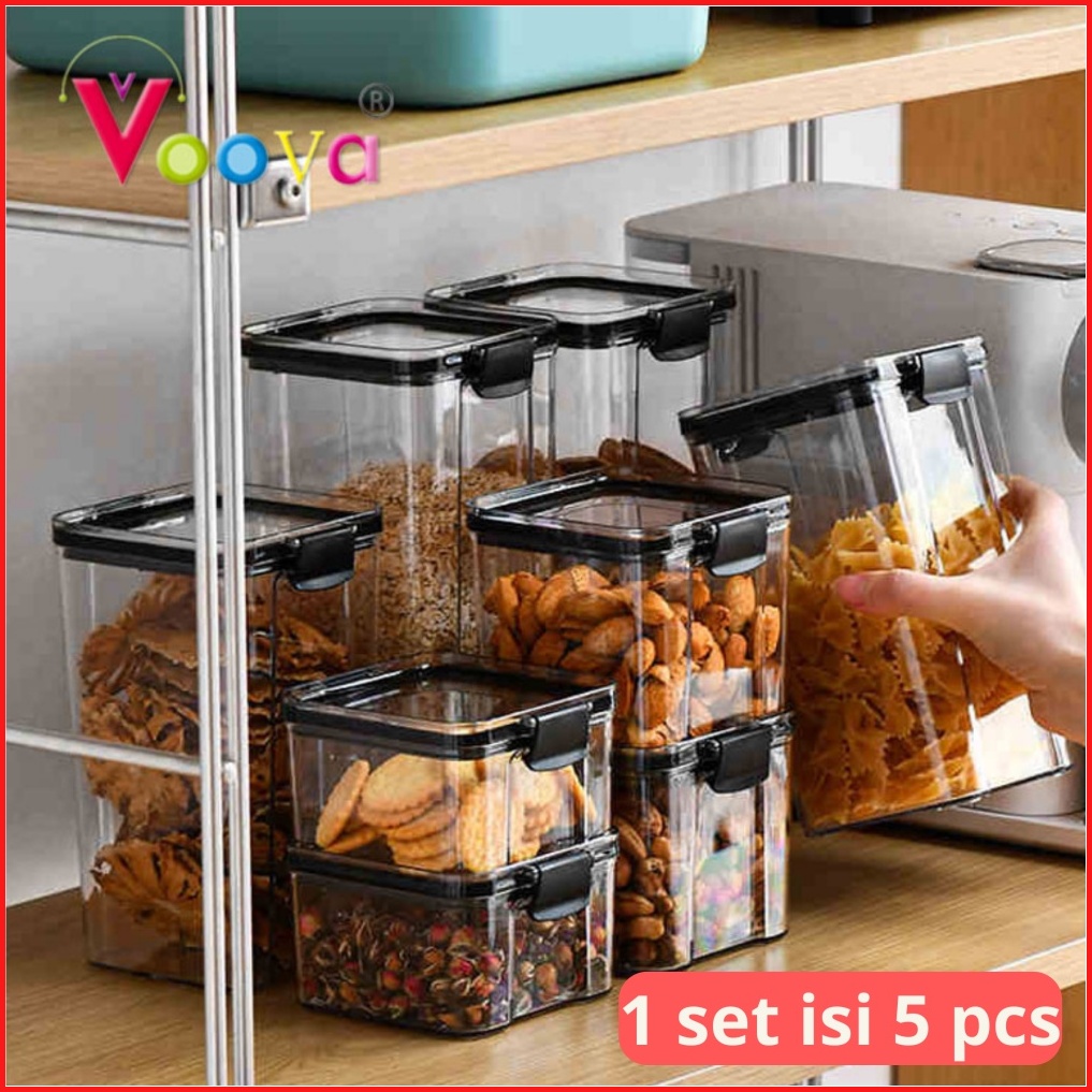 Voova Set Toples Akrilik Toples Kedap Udara Toples Kue Kering Food Container 1 Set Isi 5 Pcs Dan 3 Pcs