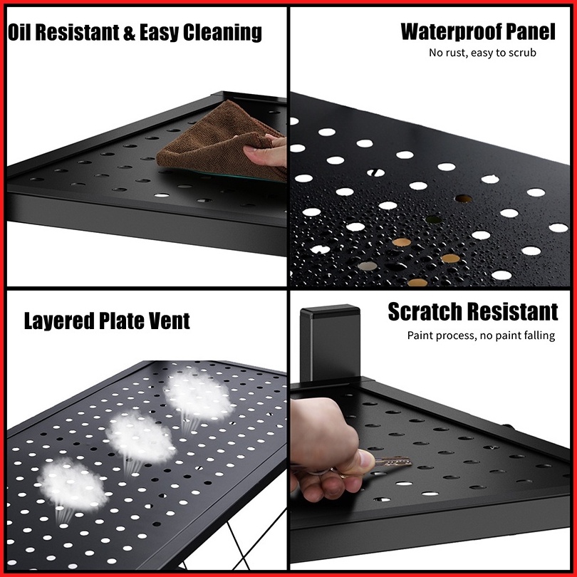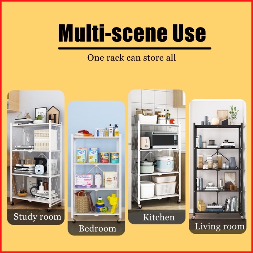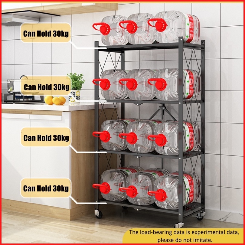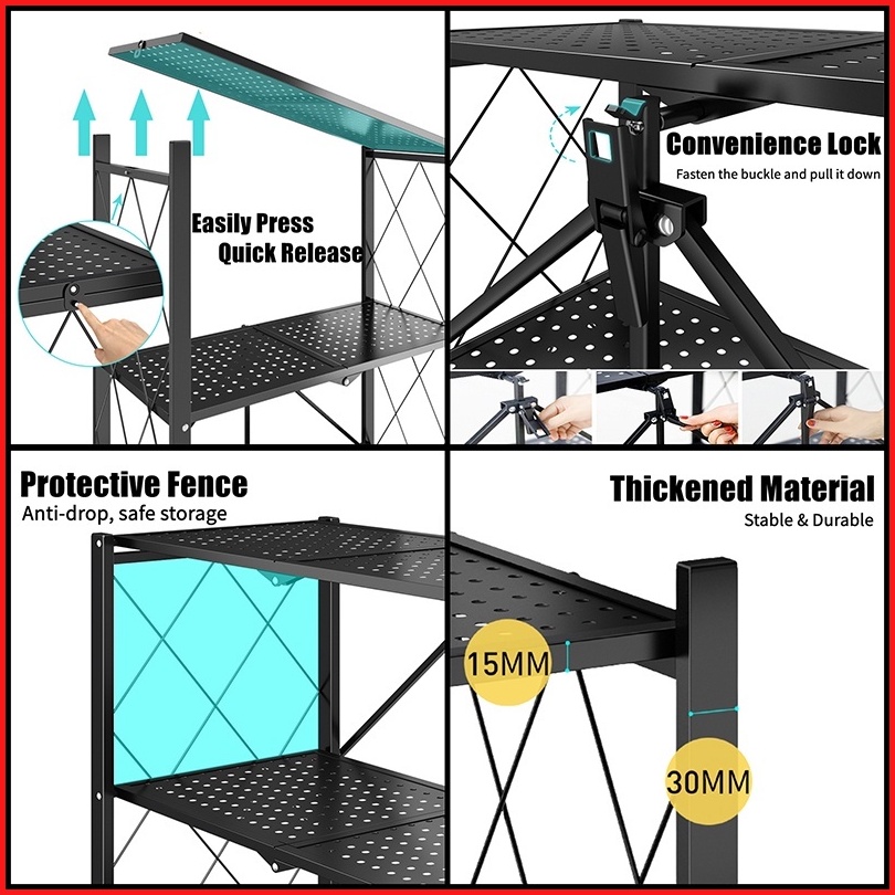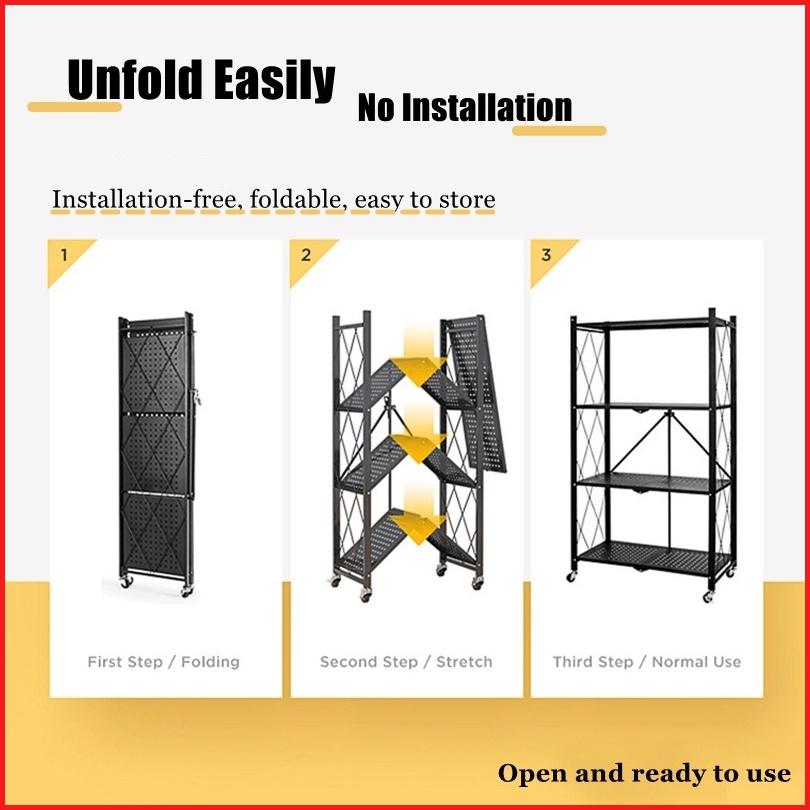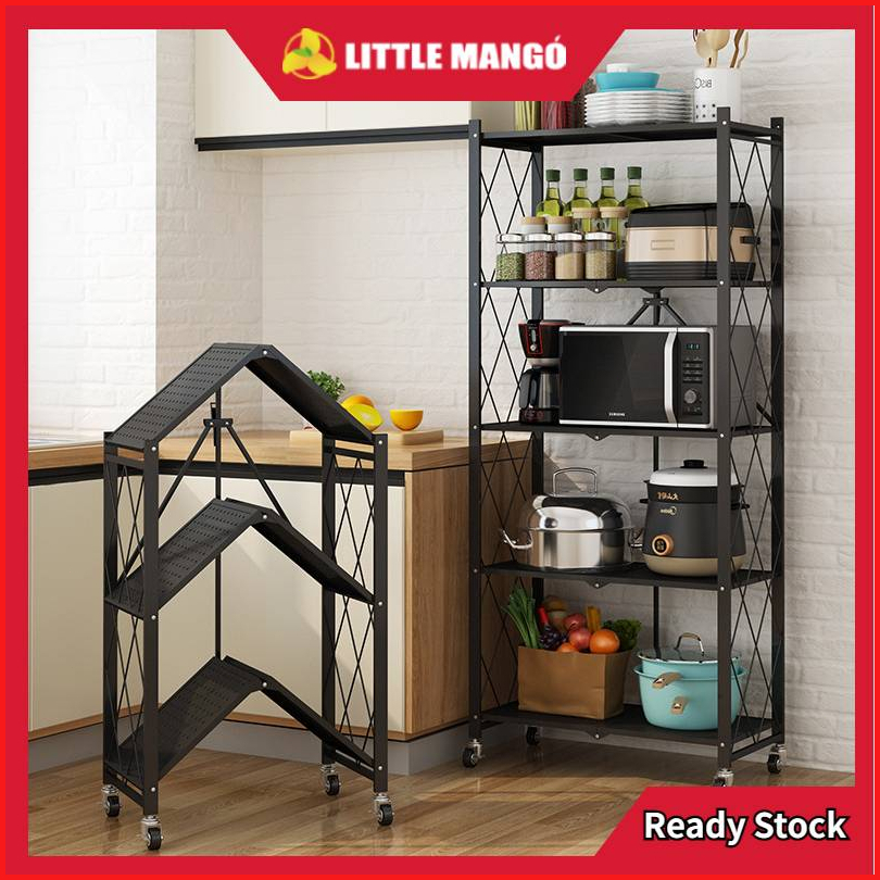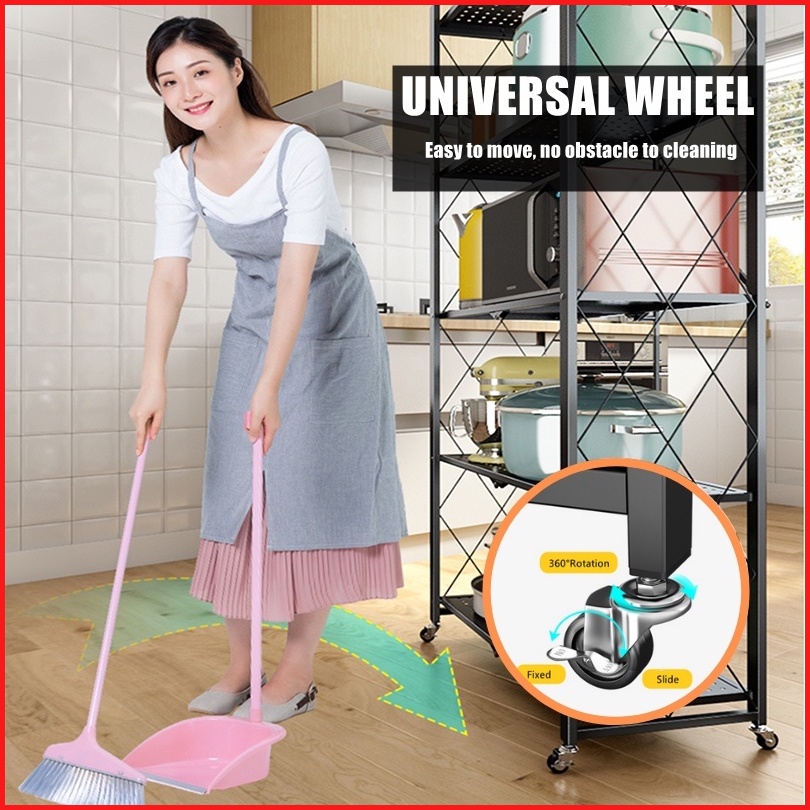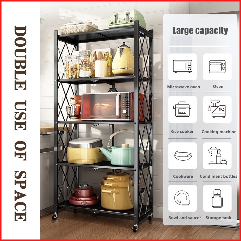 Rak Dapur Multi-fungsi Tanpa Instalasi Rak Penyimpanan Rak Lipat Rak Dapur Susun Serbaguna Foldable Rak With Wheel F21