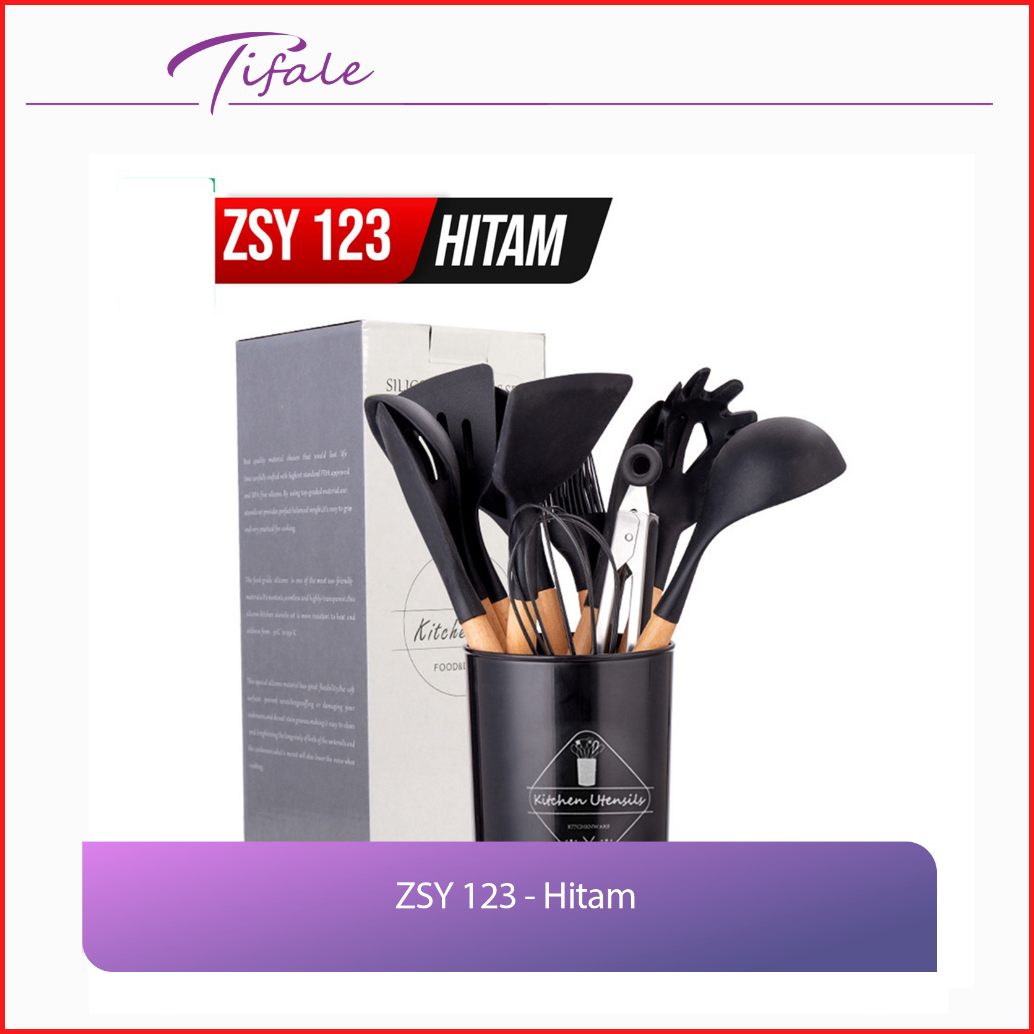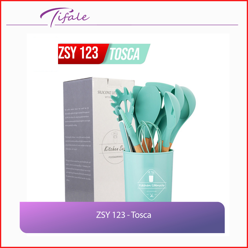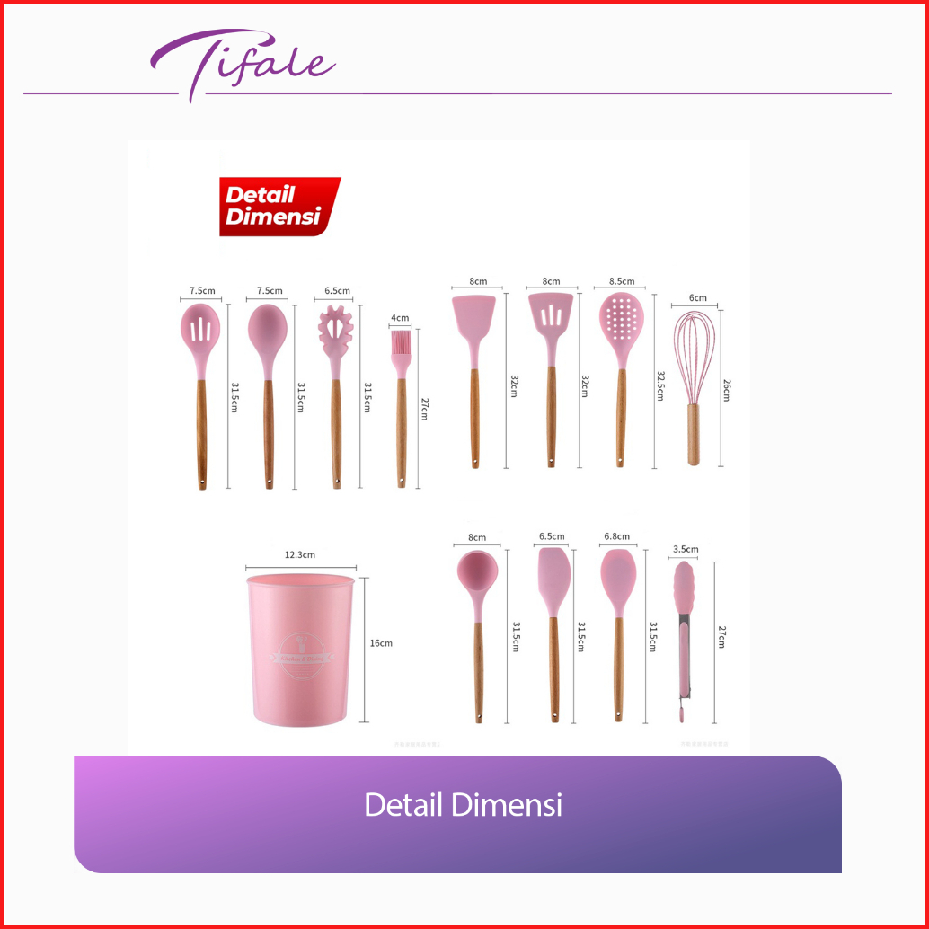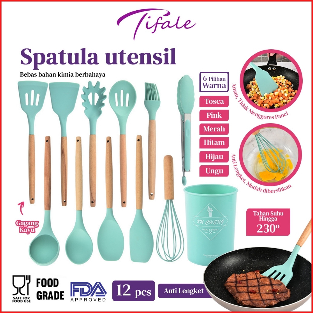 Tifale Silicone Utensil 12 Pcs Spatula Peralatan Masak Sutil Pegangan Kayu Baking Set Alat Masak