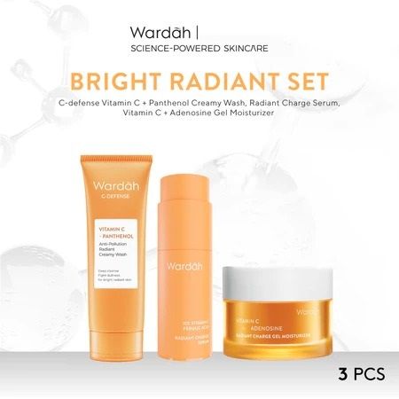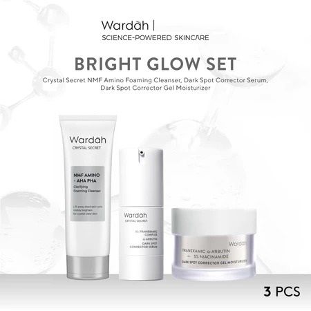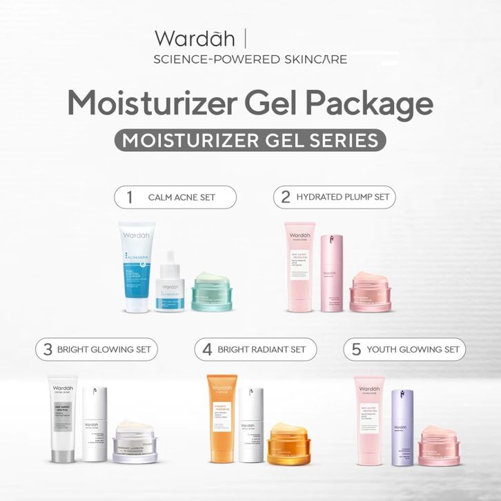 Wardah [3 pcs] Paket Gel Moisturizer, Face Wash, dan Serum - Calm Acne, Hydrated Plump, Youth Glowing, Bright Glowing, B