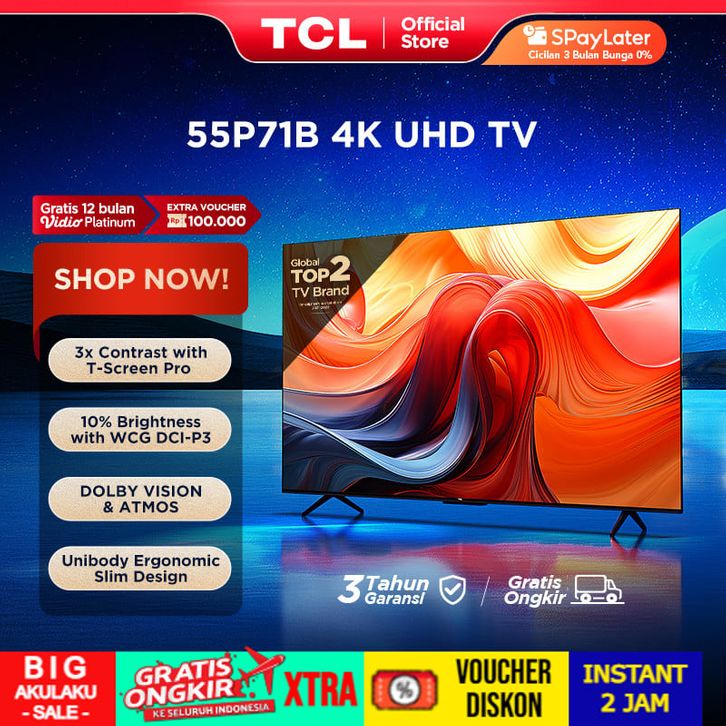 [4K Hands-Free Google TV] TCL 55 Inch P71B – 120Hz DLG – HDR10+ – Dolby Vision/Atmos – T-Screen – Uni-Body Design