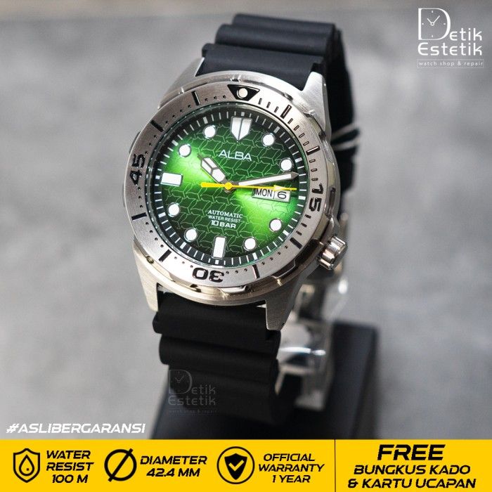 Jam Tangan Pria Alba AL4447X1 Automatic Green Dial with Black Strap