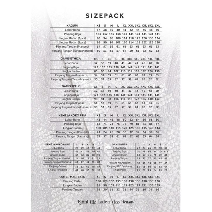 Boy 10, Boy 2, Boy 4, Boy 6, Boy 8, Gamis 3XL, Gamis L, Gamis M, Gamis S, Gamis XL, Gamis XS, Gamis XXL, Girl 0, Girl 10, Girl 2, Girl 4, Girl 6, Girl 8, Koko 3XL, Koko L, Koko M, Koko S, Koko XL, Koko XS, Koko XXL