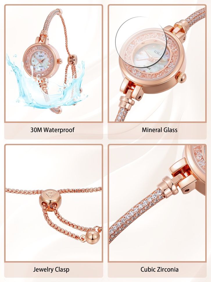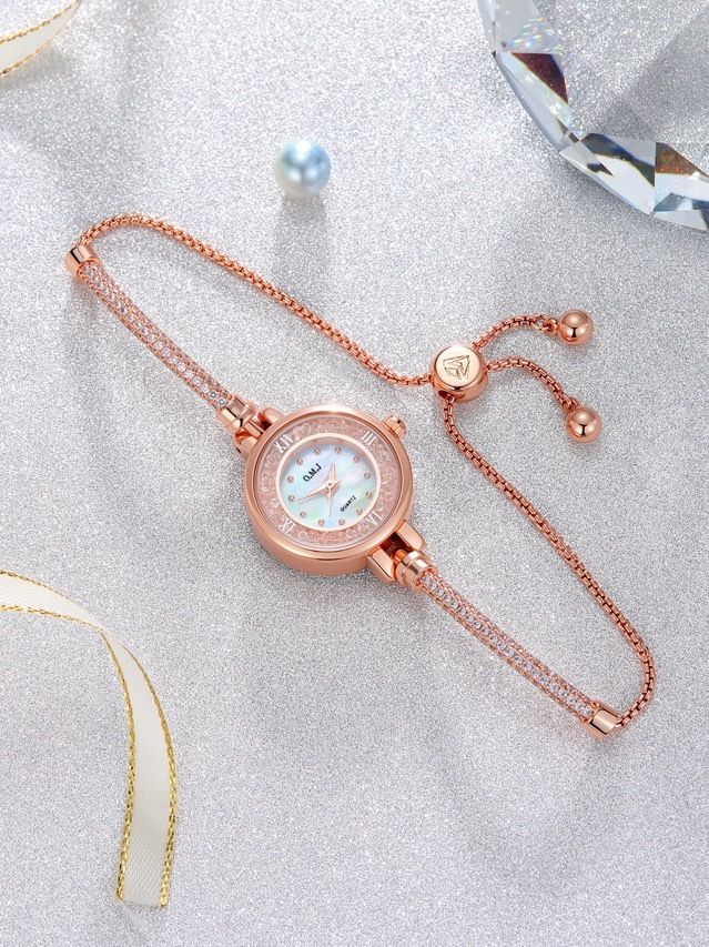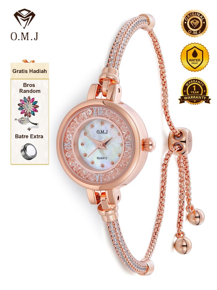 OMJ G037 Jam Tangan Serut Wanita Berlian Rose Gold Gelang Strap Dapat Disesuaikan Sendiri Korea Trend