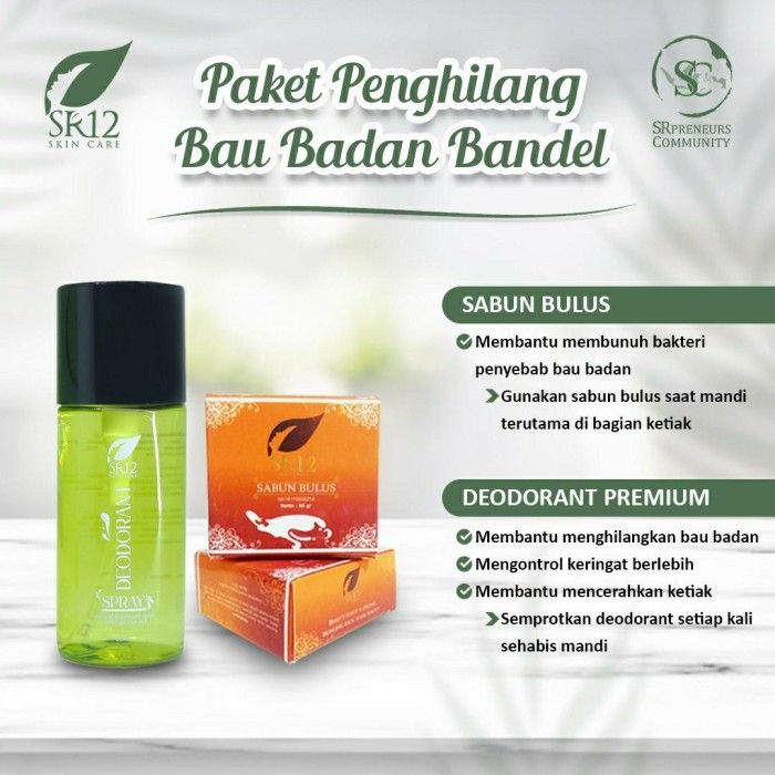 SR12 Deodoran Spray Premium & Sabun Bulus Paket Bau Badan Berlebihan