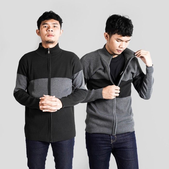 Sweater Pria Jaket Rajut Turtleneck Pria Wanita Sweater Zipper Jaket Unisex Prodigo Banyu - Abu M