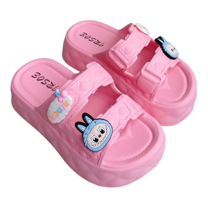 Sandal anak Perempuan Double Strap Jibitz Labubu Slip On Ringan Nyaman Kekinian 572