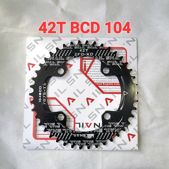 Snail Chainring 42T BCD 104 Narrow Wide Chain ring Crank Sepeda Hitam