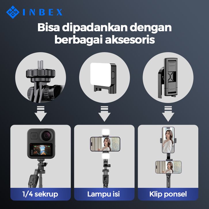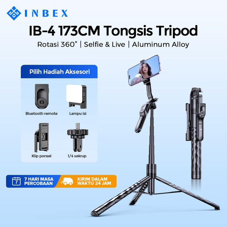 (PROMO) [K] INBEX IB-4 TONGSIS TRIPOD BLUETOOTH REMOTE WITH VIDEO LIGHT SELFIE STICK TRIPOD GIMBAL STABILIZER HANDPHONE