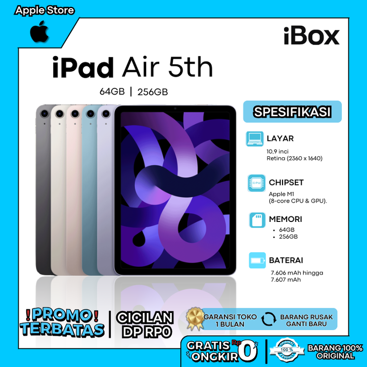 Tablet iPad Air 5 4 3 2 1 2022 Chip M1 64GB 256GB Second Original WiFi Only BNIB WARNA GREY STARLIGTH PINK PURPLE BLUE