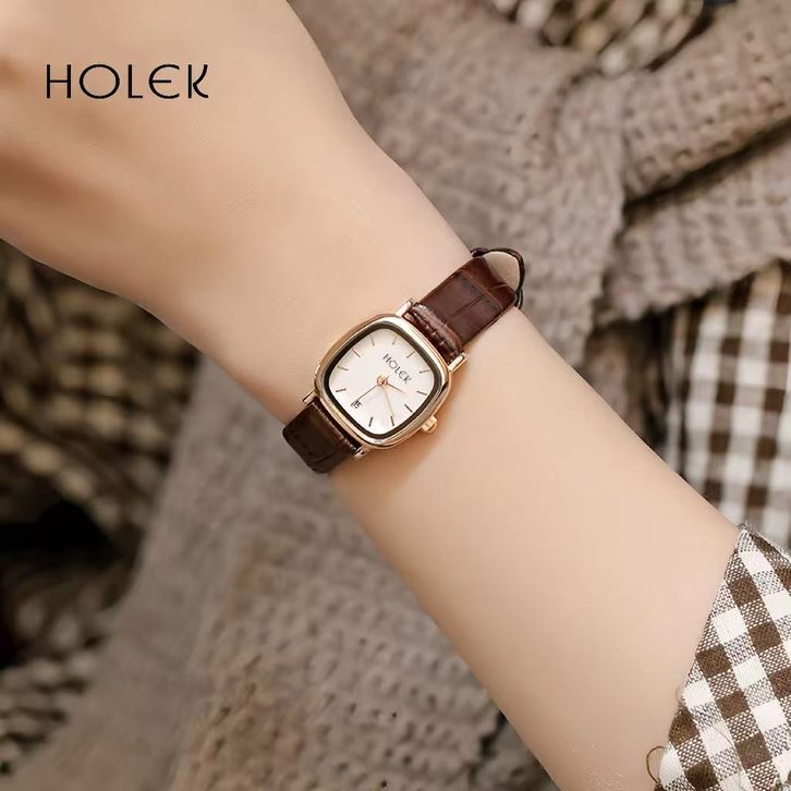 HOLEK 1301 Jam Tangan Wanita Tali Kulit Original Anti Air Fashion Simple Santai Quartz Elegant Jam Tangan Cewek+ Kotak H