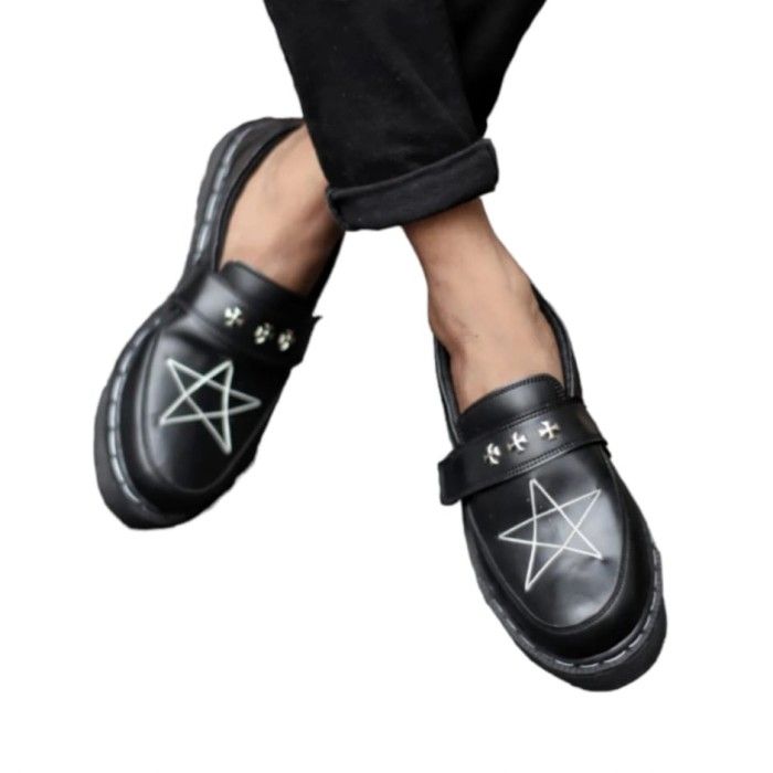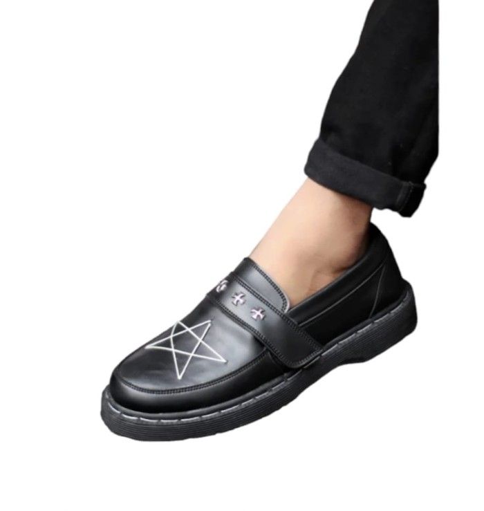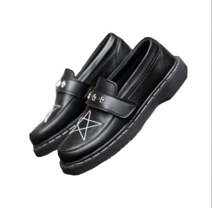 Sepatu Docmart Pria sepatu pria loafer starmoon bintang M0Del docmart kulit pu - putih gesper sp 38