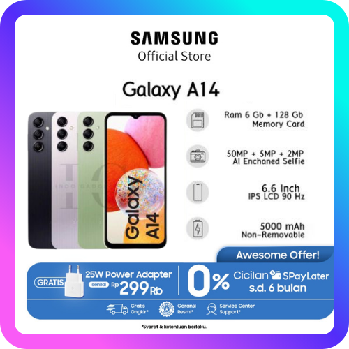 [Mall] SAMSUNG GALAXY A14 RAM 6/128GB OFFICIAL STORE HP TERBARU 2025 TANPA DP
