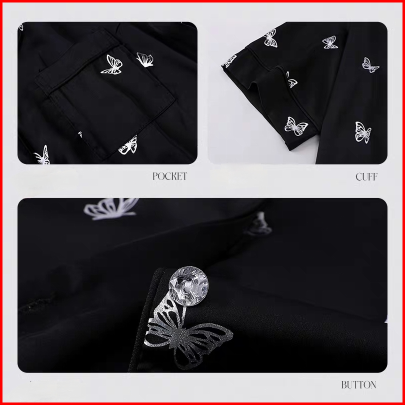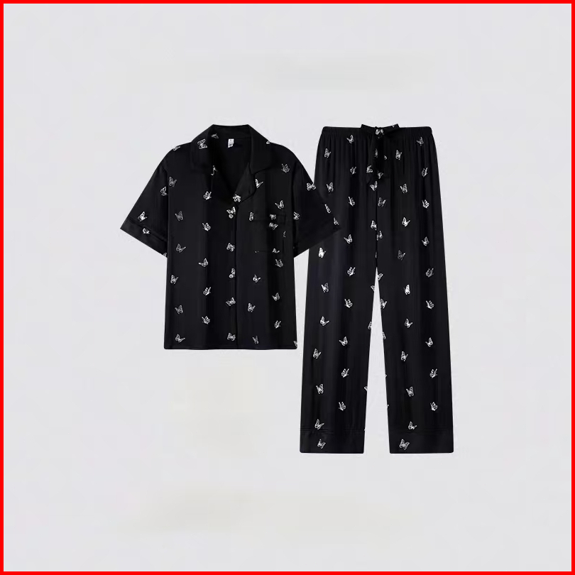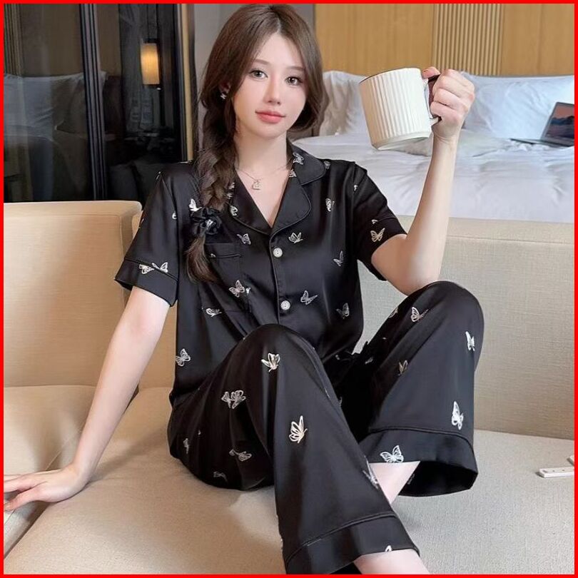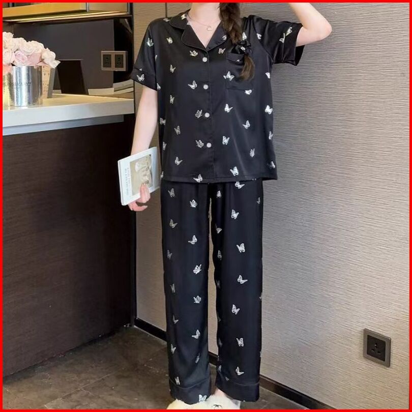 Set Piyama Kekinian Wanita Motif Kupu - Kupu Populer Dengan Bahan Halus Daster Baju Tidur Wanita Baju Tidur Piyama Tidur