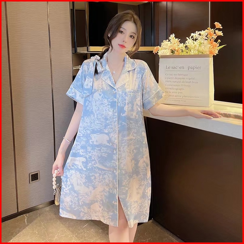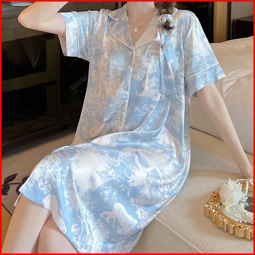 2025 Baju Tidur Piyama Satin Wanita Baru Berwarna Dasi