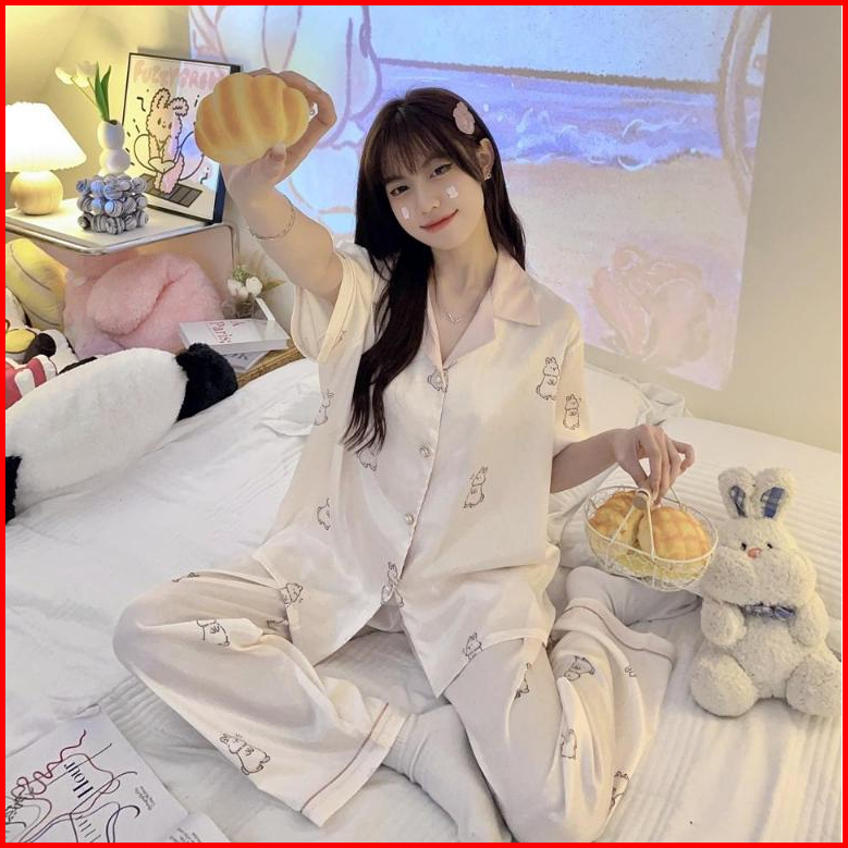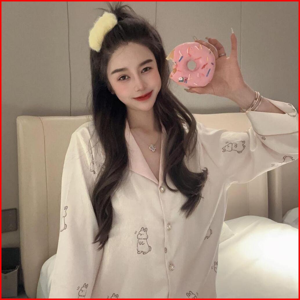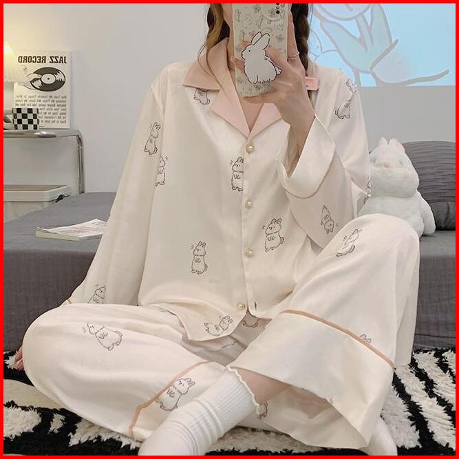 021 Luxury Sleepwear Kelas Atas Piyama Satin Lengan Panjang Celana Panjang Kerah Motif Kancing Pearl Bahan Satin High Qu