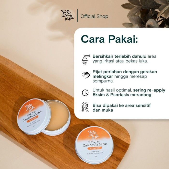 BIOTALK NATURAL CALENDULA SALVE NO STEROID SALEP EKSIM PSORIASIS KULIT SENSITIF ECZEMA ALERGI GATAL BIO TALK