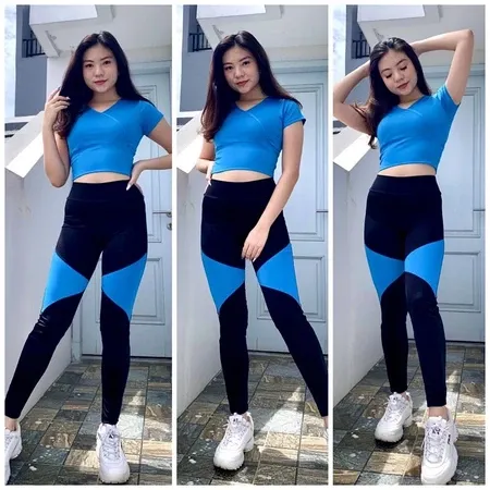 GRATIS ONGKIR !! /Setelan senam aerobik zumba yoga gym fitness model crop V-legging triangle