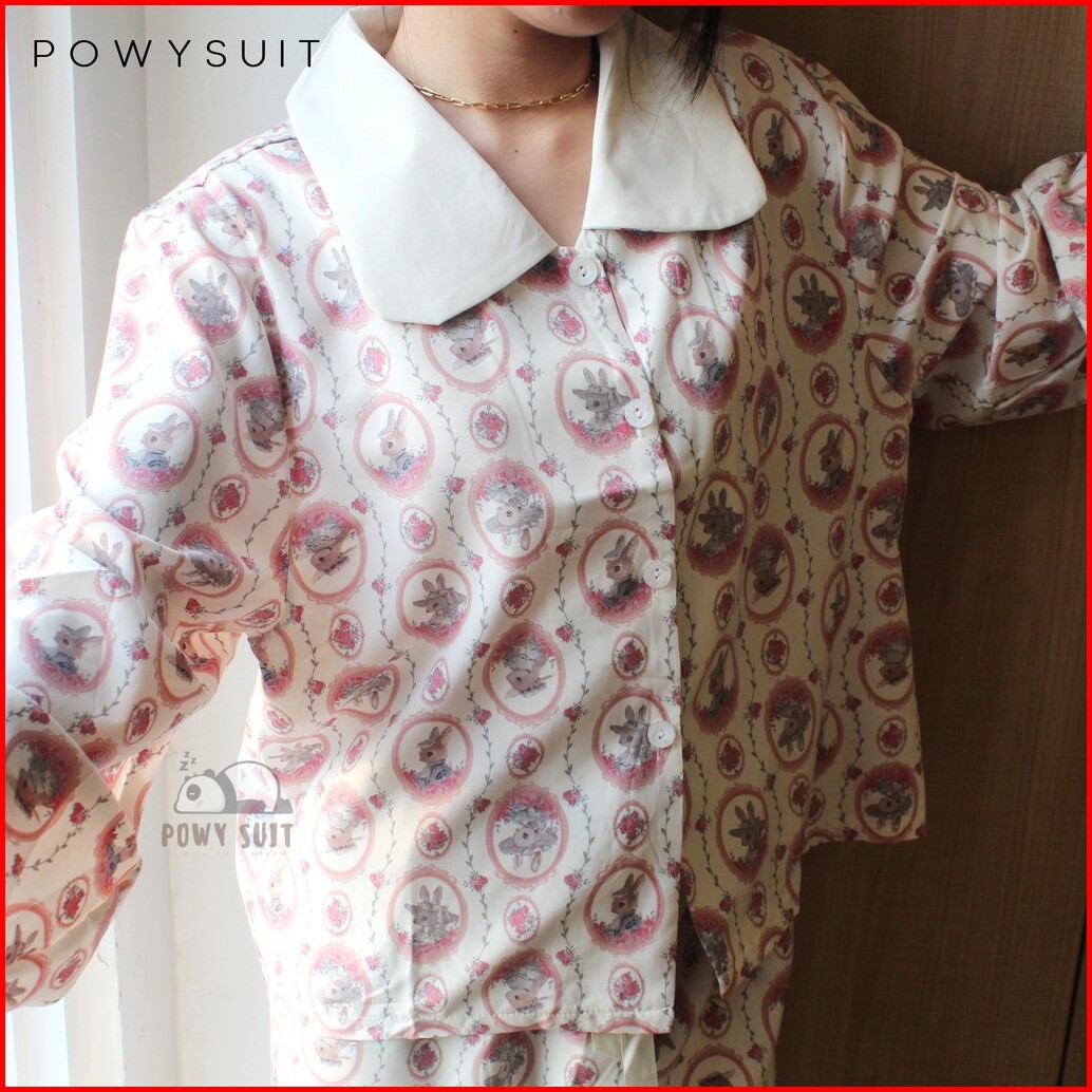 Yx64 Rabbit Piyama Powysuit Satin Sutra Wanita Setelan Lengan Panjang Celana Panjang Lembut Dewasa