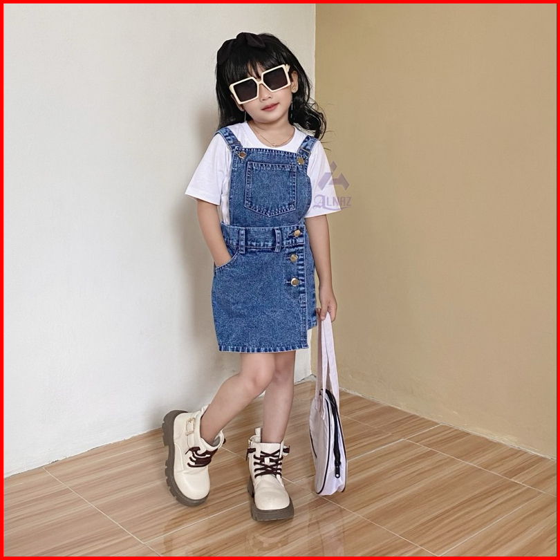 Overall Rok Celana Jeans Set 2 In 1 Ariana Overall Baju Kaos Anak Perempuan