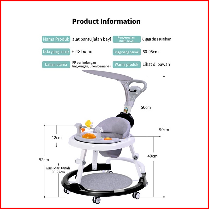 Bmtoo Baby Walker Lipat Musik Walker Bayi