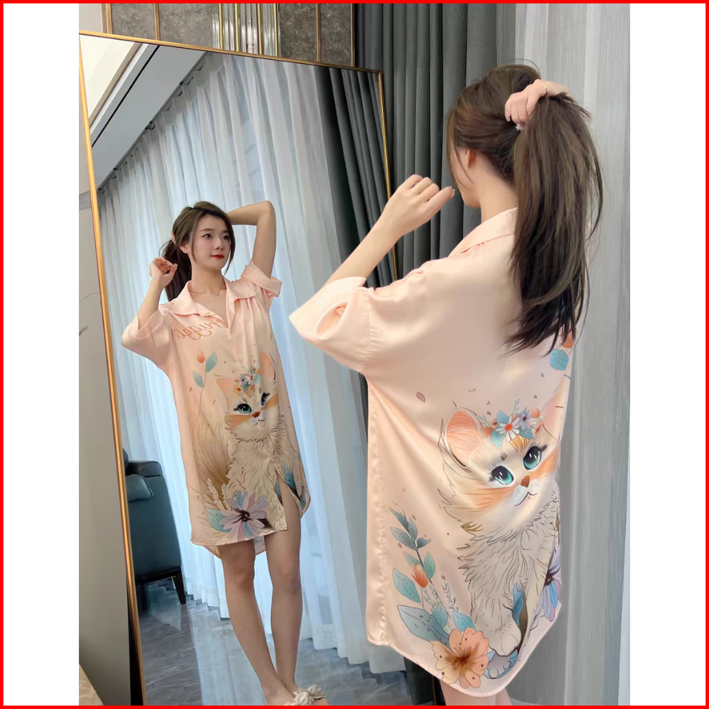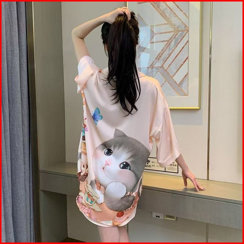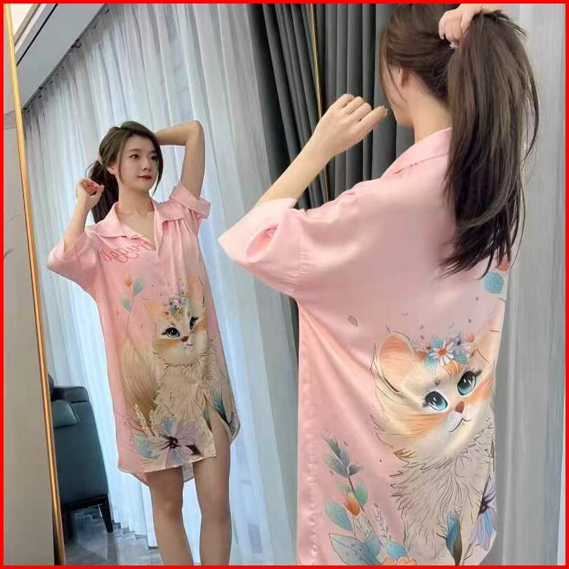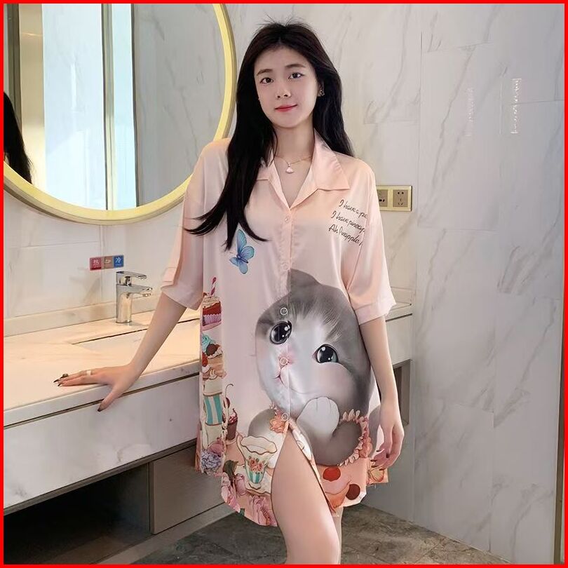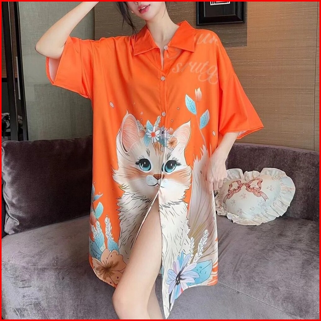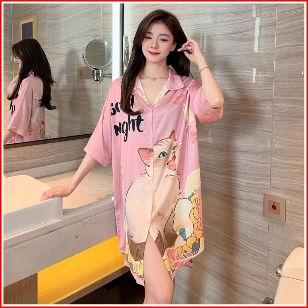 Dress Tidur Korea Wanita Sexy Jumbo Piyama Lucu Dress Kemeja Wanita Plus Size Gaun Tidur Wanita
