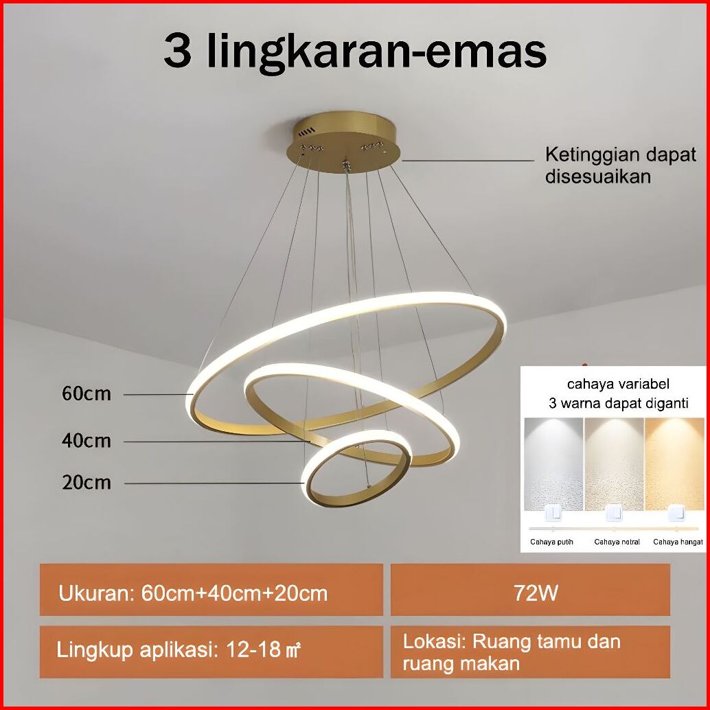 Garansi 10 Tahun Lampu Gantung Minimalis Modern Ruang Tamu - Lampu Gantung Led 3 Ring Modern Untuk Kamar Tidur 20 40 60c