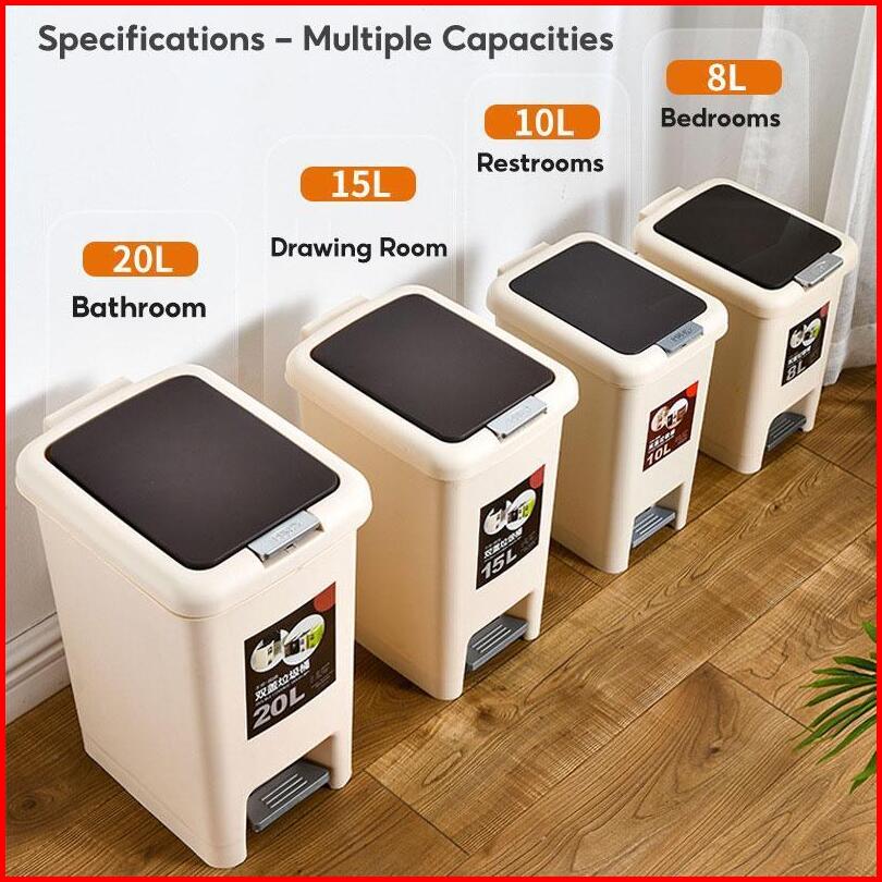 Tempat Sampah Plastik Multitipe Injak Kapasitas 8l 10l 15l 20l Tong Sampah Tertutup Trash Bin Kotak Sampah Dapur Kamar M