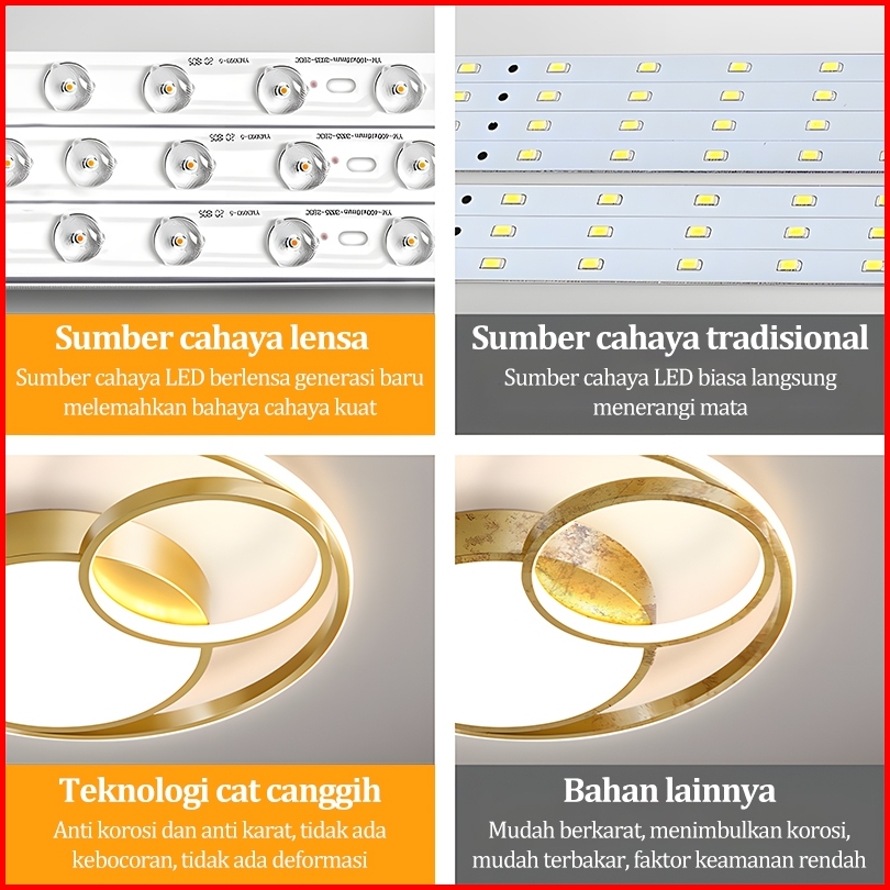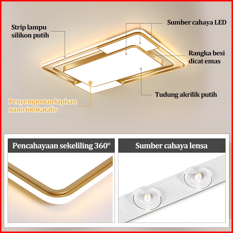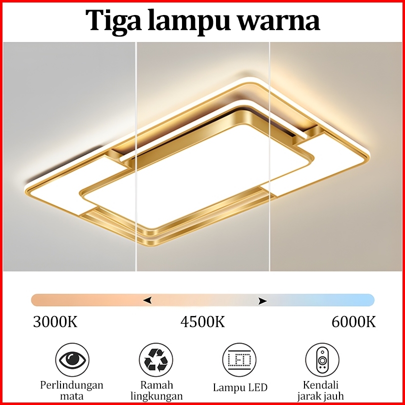 Lampu Plafon Minimalis Modern 48 90cm 3 Warna Bulat Persegi Lampu Plafon Ruang Tamu Led