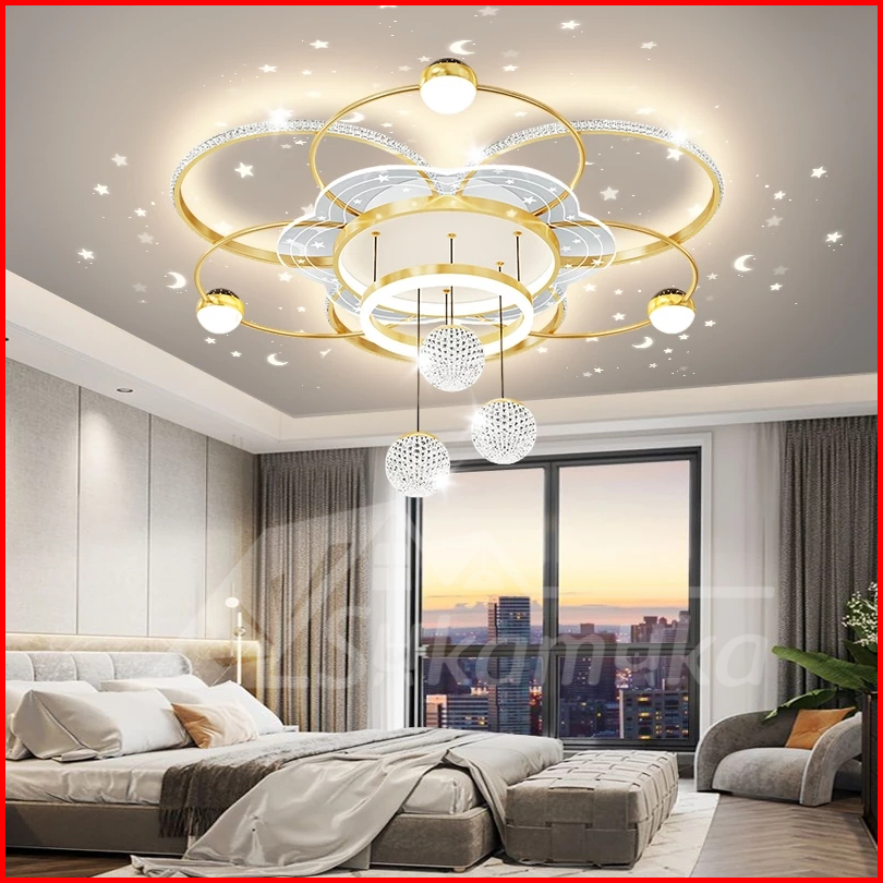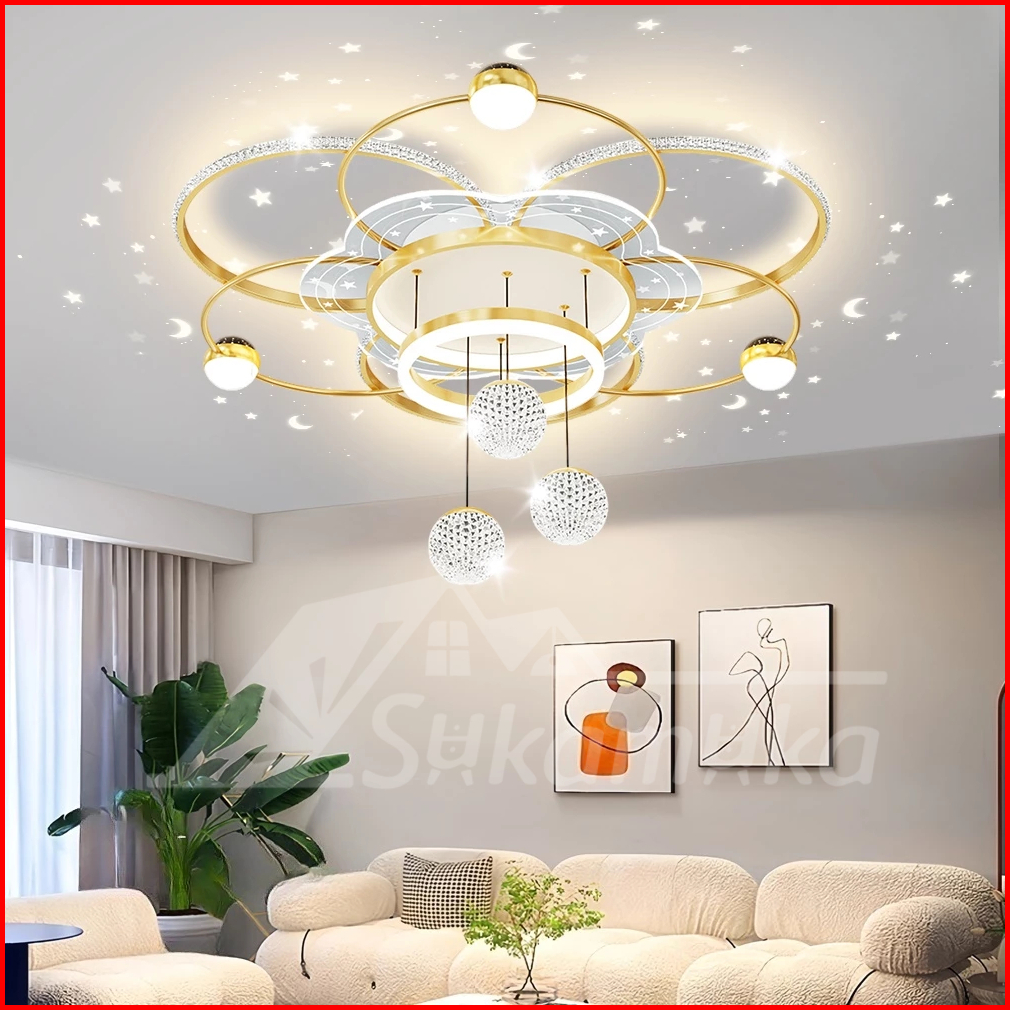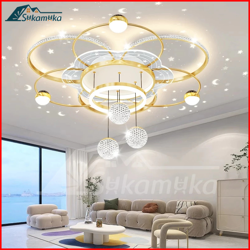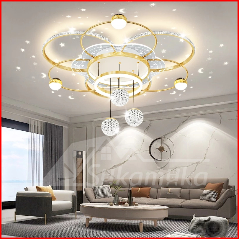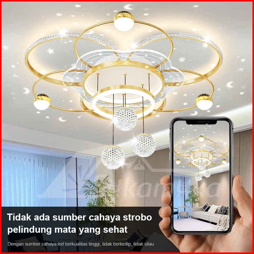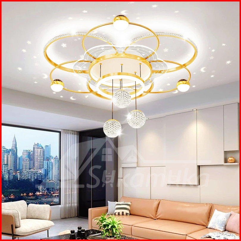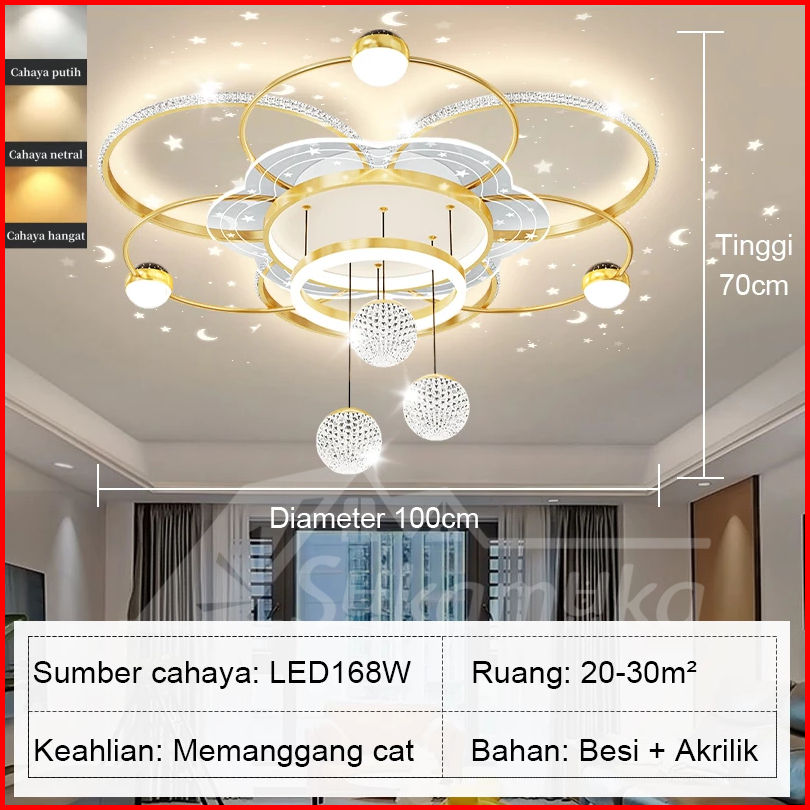 Lampu Gantung Ruang Tamu Aesthetic Mewah Lampu Gantung Nordic Modern Led 168watt 3 Warna 100cm Remote Control Besar Lamp