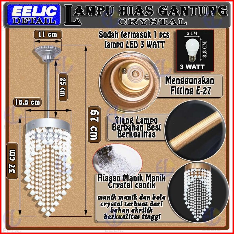 Eelic Lhg-80 Lampu Hias Gantung Crystal Desain Interior Modern 1 Pcs Lampu Led Lau-sl3w 3 Watt