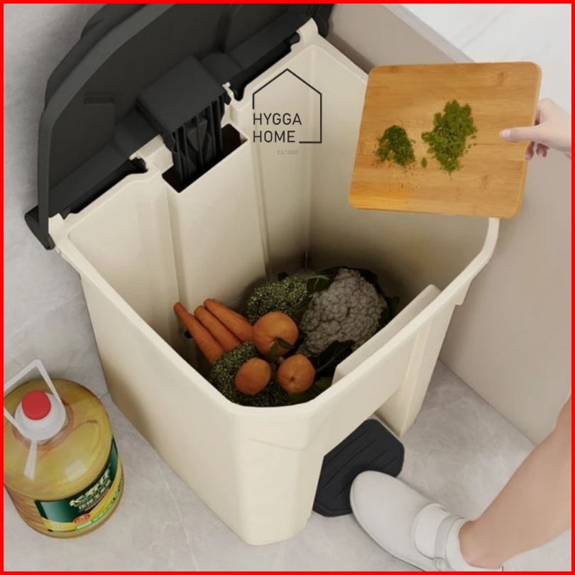 Hygga Home Tama Trash Can Tempat Sampah Injak Plastik Dengan Tutup Otomatis Tong Sampah Kering Basah