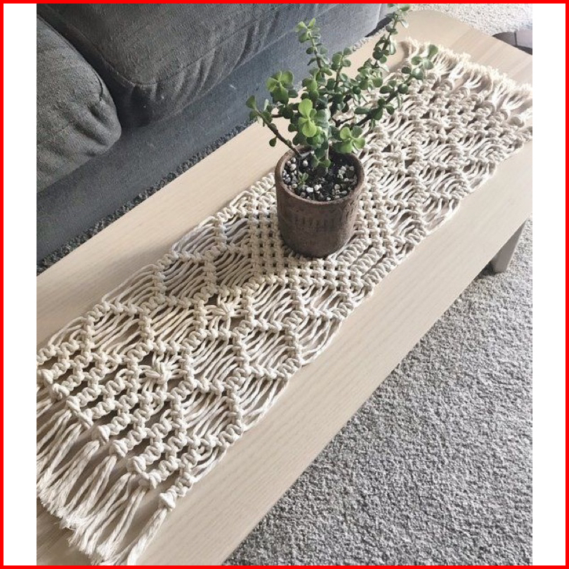 Ready Stok Taplak Meja Macrame Broken White 27x80cm