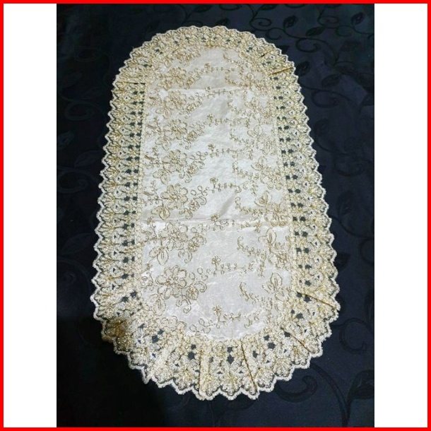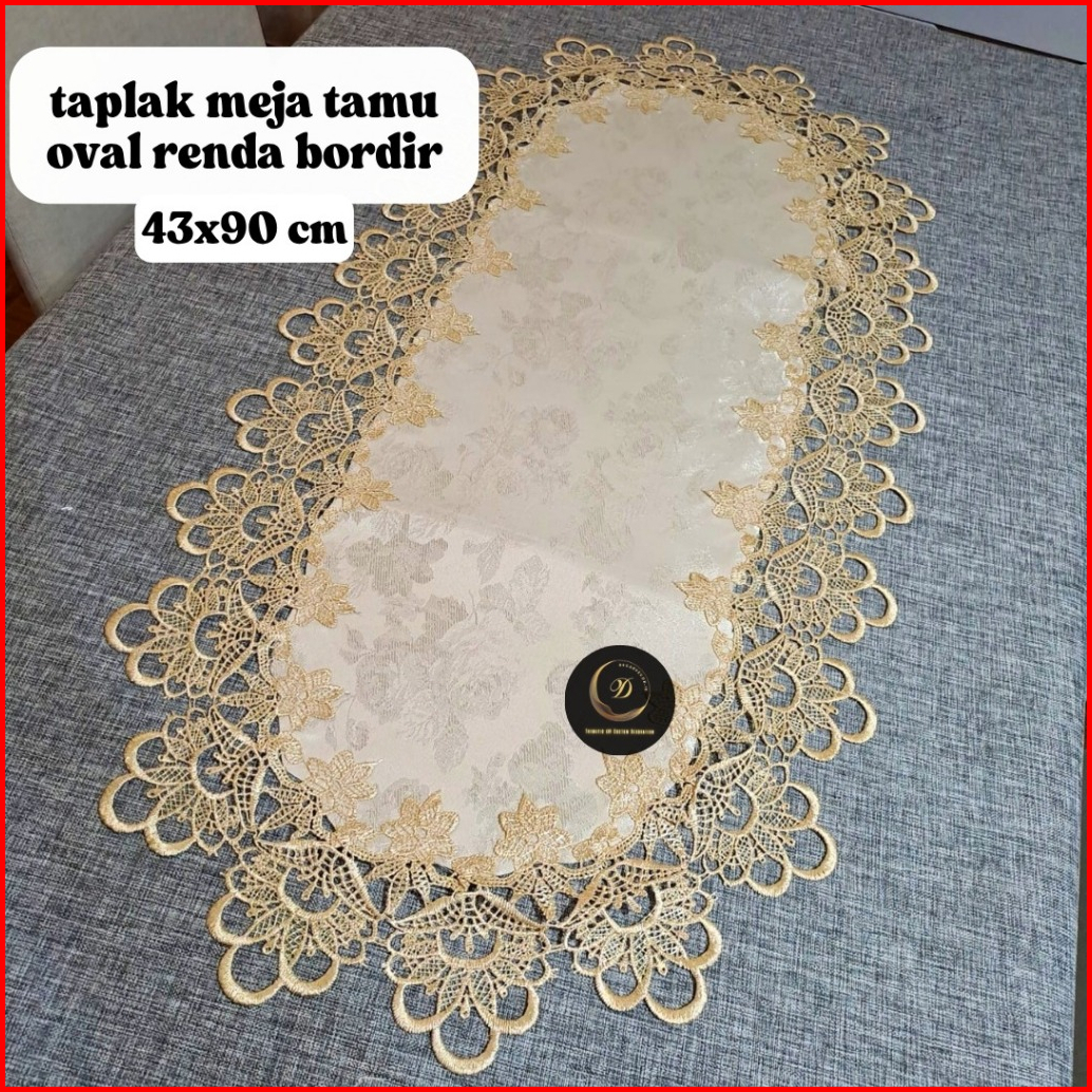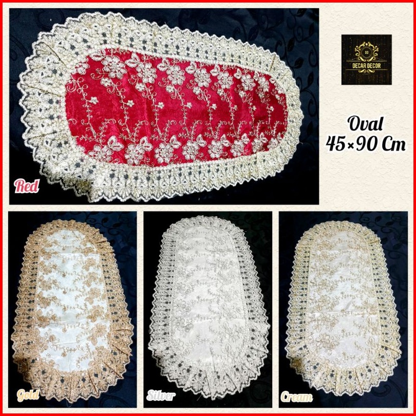 Taplak Meja Tamu Oval Renda Bordir Mewah Taplak Meja Oval Bordir Premium 43 90 Cm