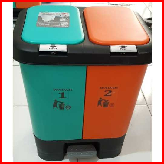 Tempat Sampah Injak 2 Wadah 20 Liter Tutup Double